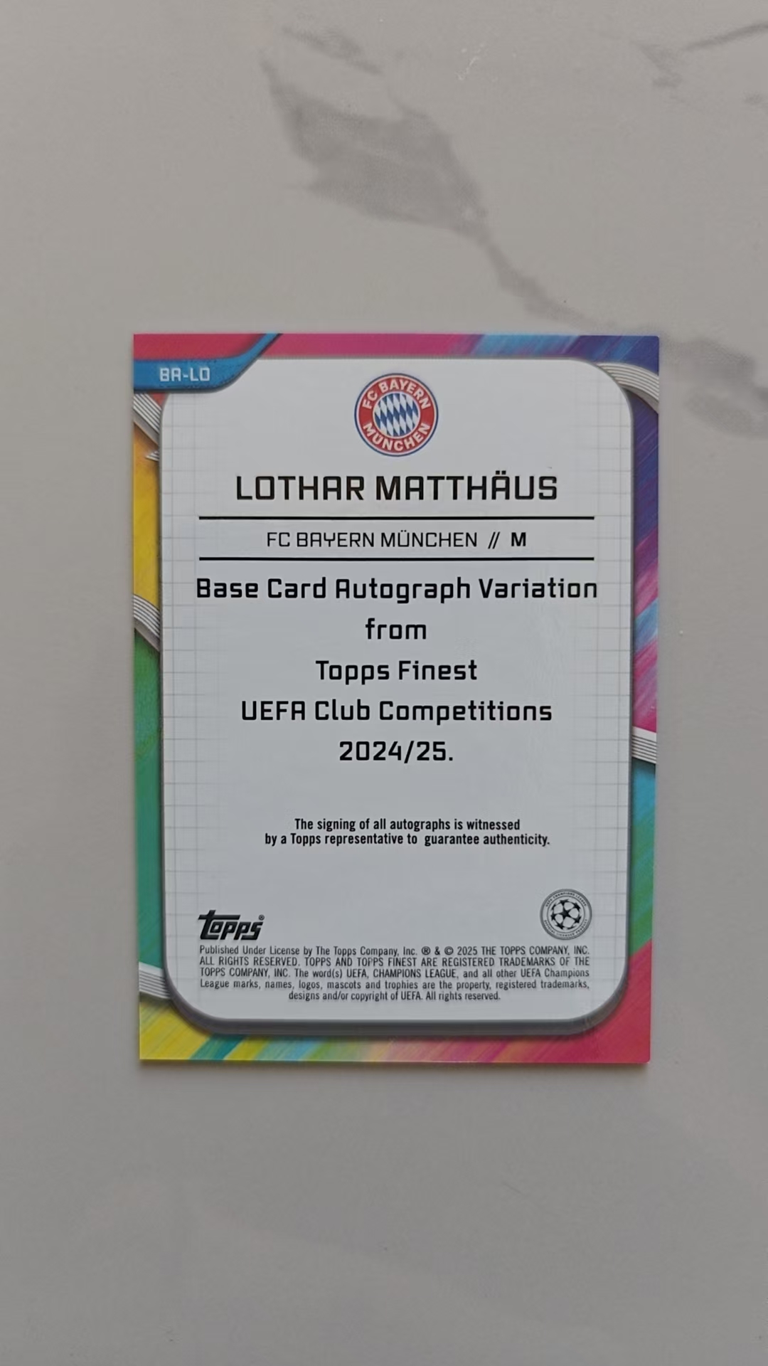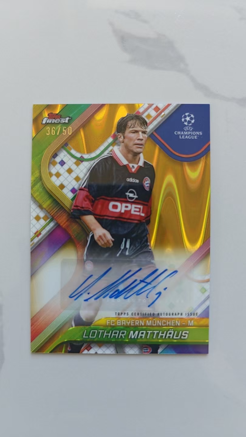 2024-25 Topps Finest Lothar Matthaus 洛塔尔·马特乌斯 拜仁 德国 三驾马车之一 清道夫 带编签字 36/50 金熔岩折 金折 欧战正系列 传奇巨星 返场
