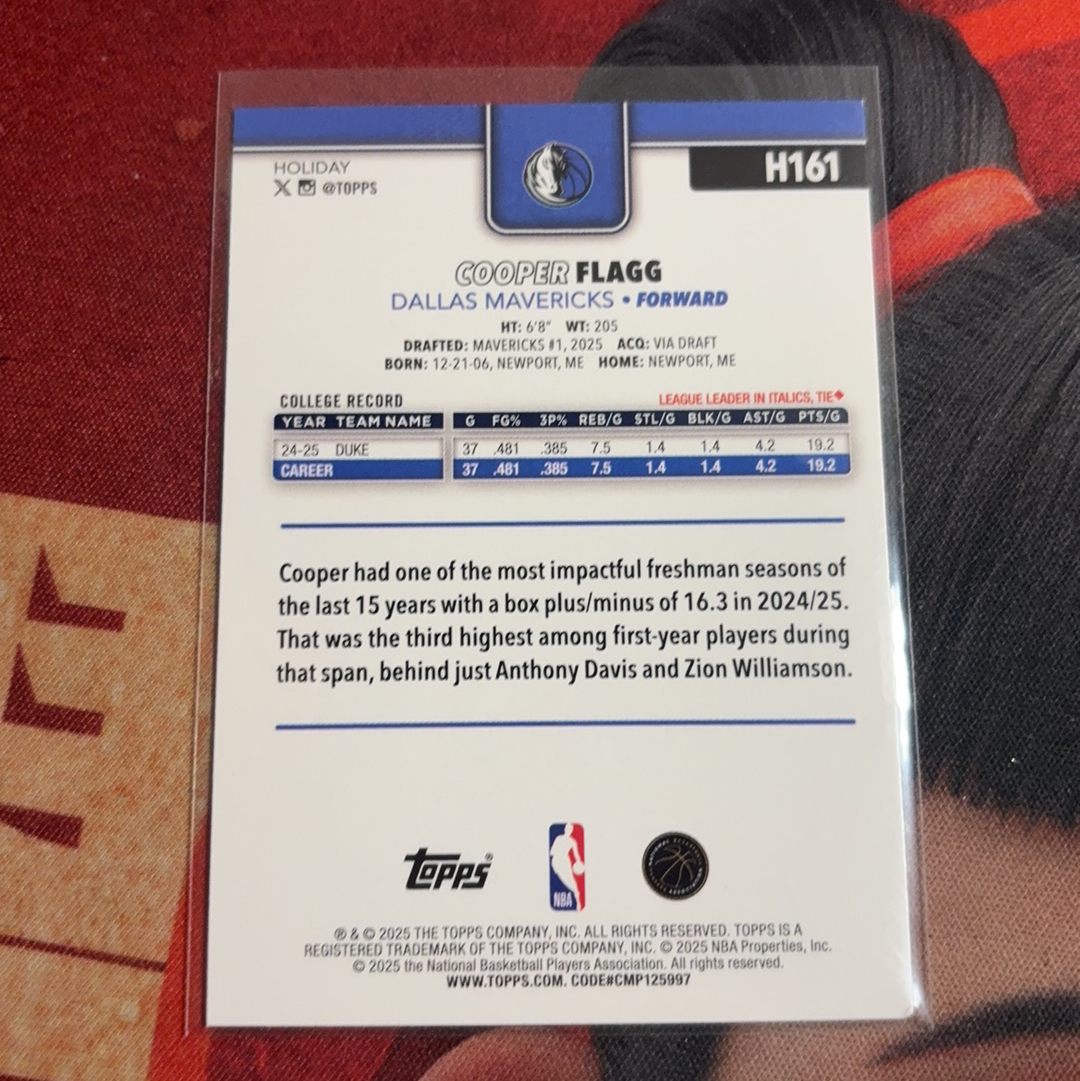 2025 Topps holiday Cooper Flagg RC 独行侠队 新秀 库珀 弗拉格 状元 圣诞假日独占 收藏必备 卡品如图