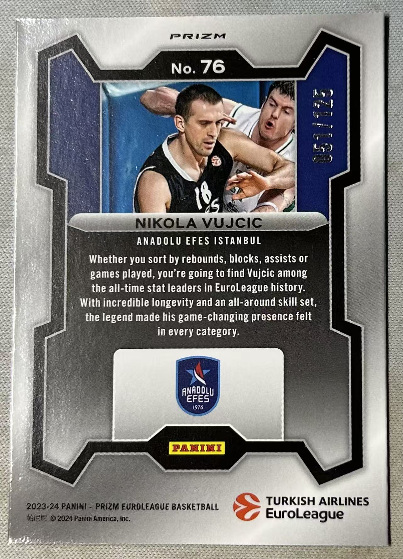 2024-25 Panini Prizm Euroleague nikola vujcic pz 欧洲联赛 尼古拉 武伊契奇 125编 蓝碎冰折 碎冰 卡品如图