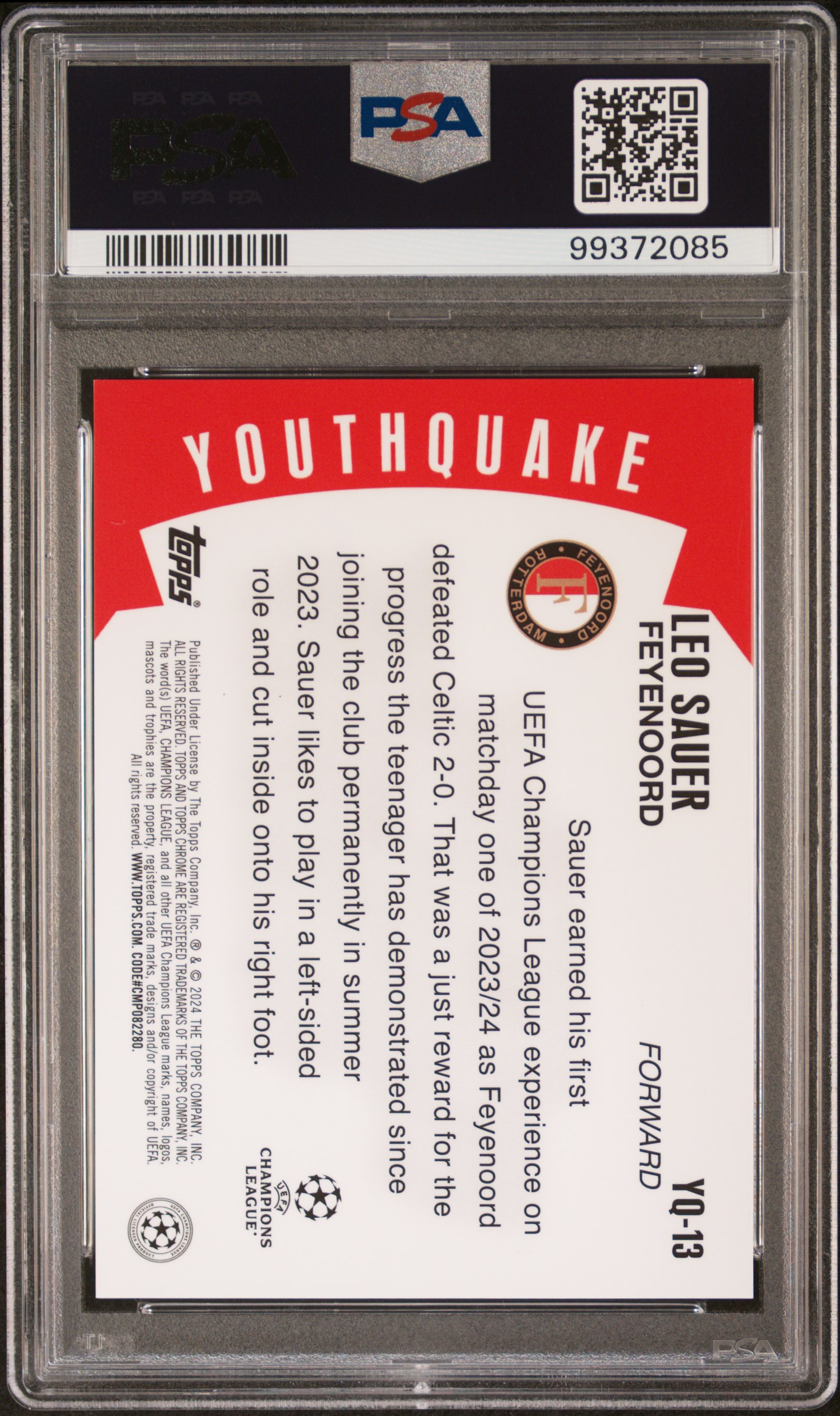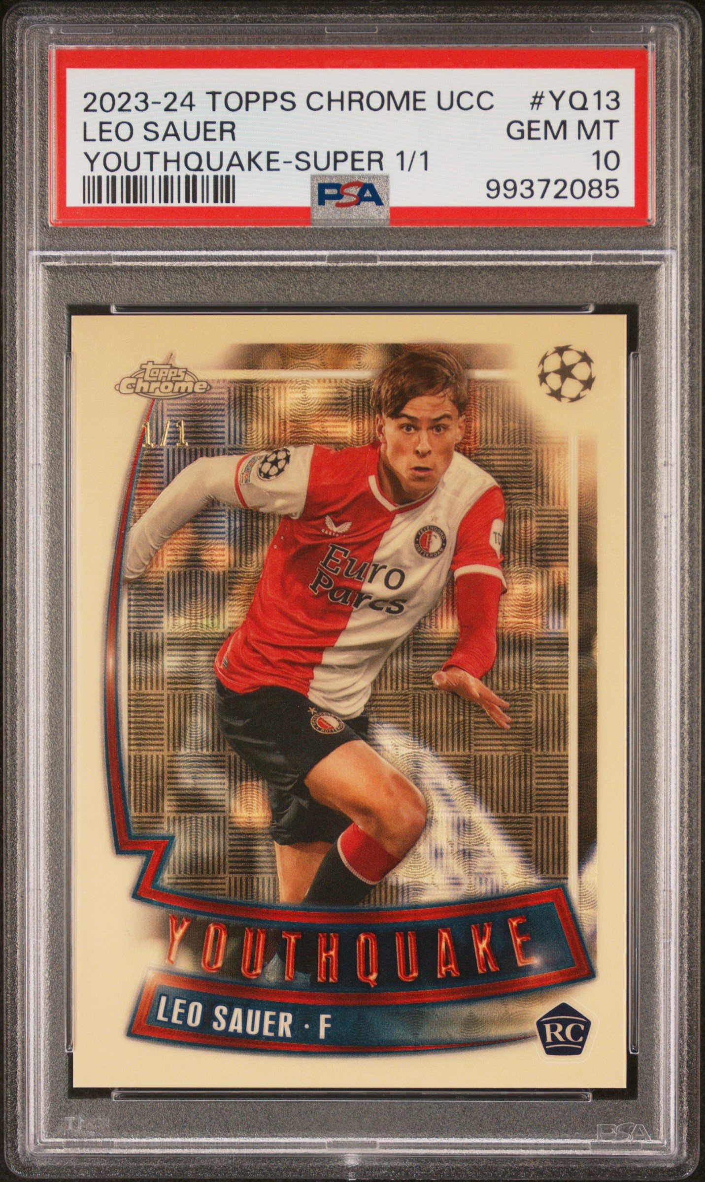 2023-24 Topps Chrome Leo Sauer RC 莱奥 绍尔 费耶诺德 斯洛伐克 TC 1/1编 爆金 青春风暴特卡 新秀前锋 主力 未来可期 PSA10分评级 专收必备