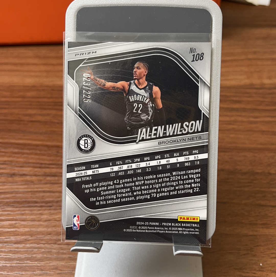 2024-25 Panini PRIZM BLACK Jalen Wilson pz 篮网 威尔逊 023/225编 球皮折 折射 瑕疵如图收藏必备