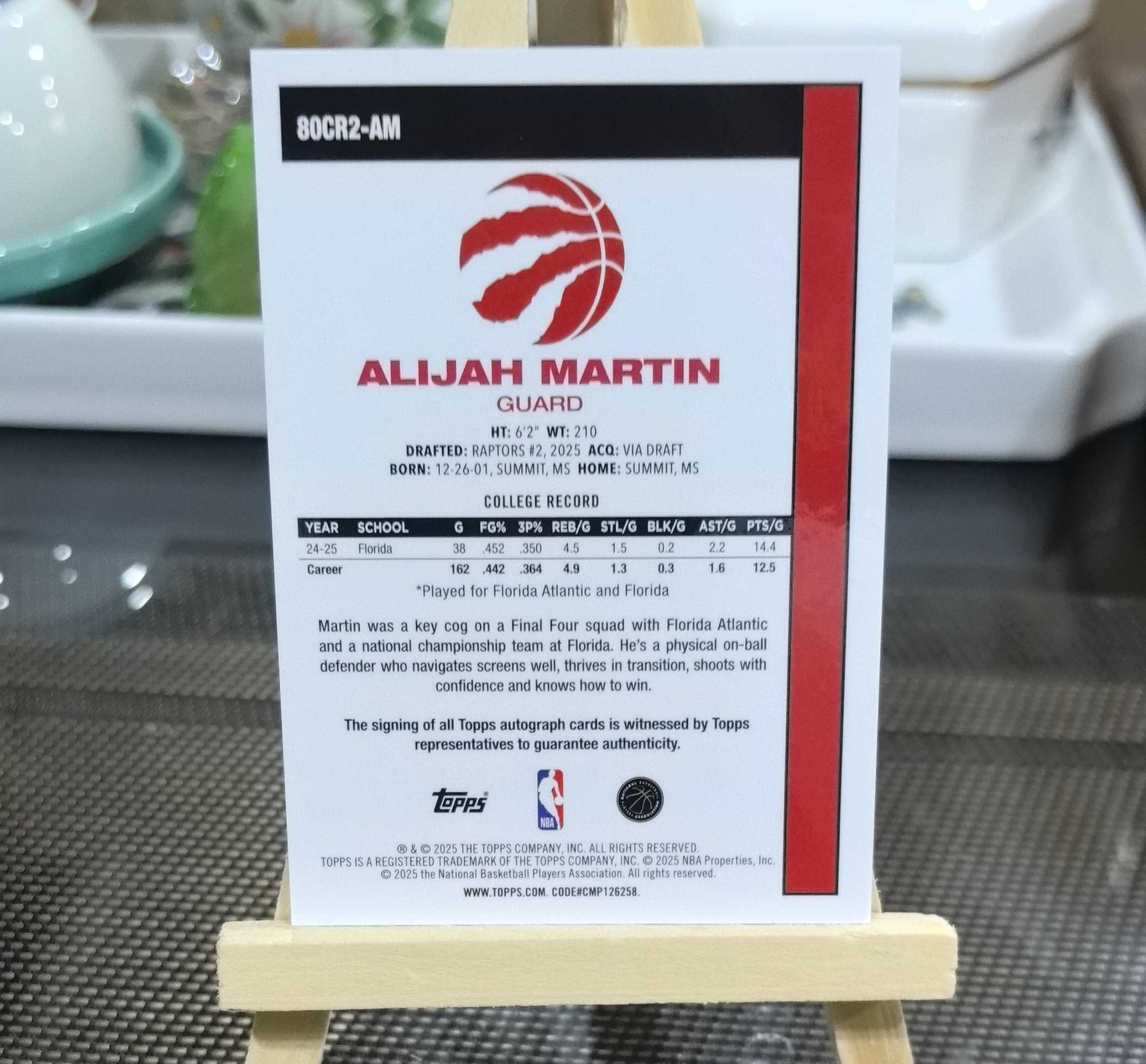 2025-26 Topps Topps Alijah Martin RC 火山🌋代拍 Topps 猛龙新秀 阿莱贾 马丁 新秀 复古 折射签字 ToppsChrome 卡签专收必备