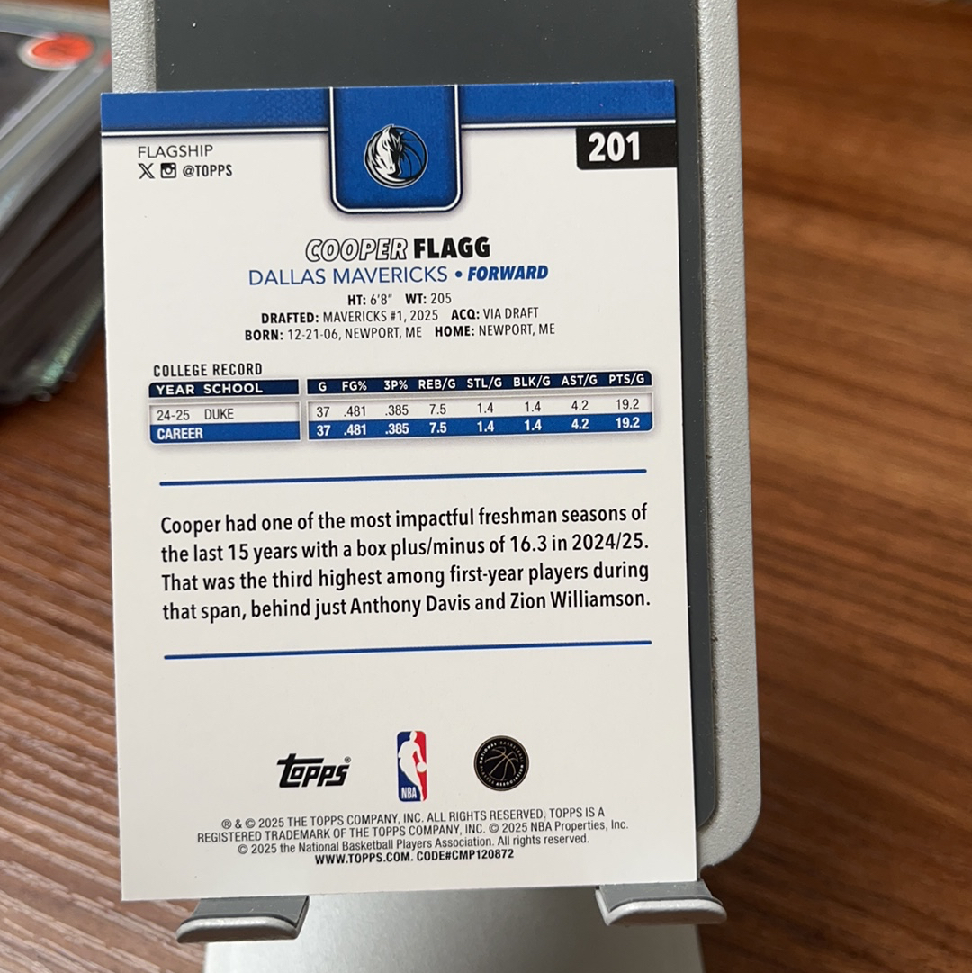2025 Topps Flagship Cooper Flagg RC 独行侠 新秀 状元 库珀 弗拉格 美国之子 base 专收凑套