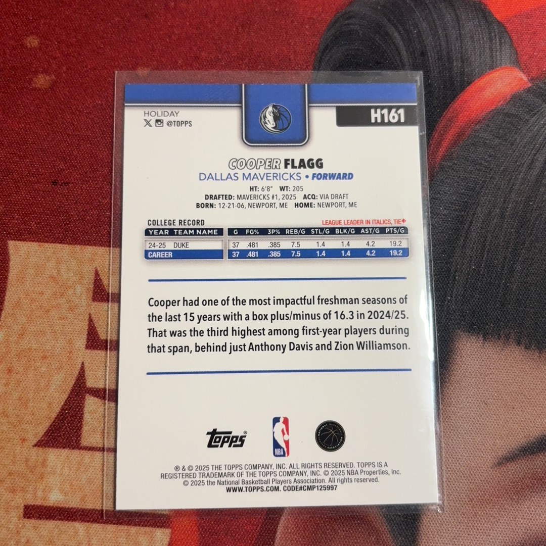 2025 Topps holiday Cooper Flagg RC 独行侠队 新秀 库珀 弗拉格 状元 圣诞假日独占 收藏必备 卡品如图