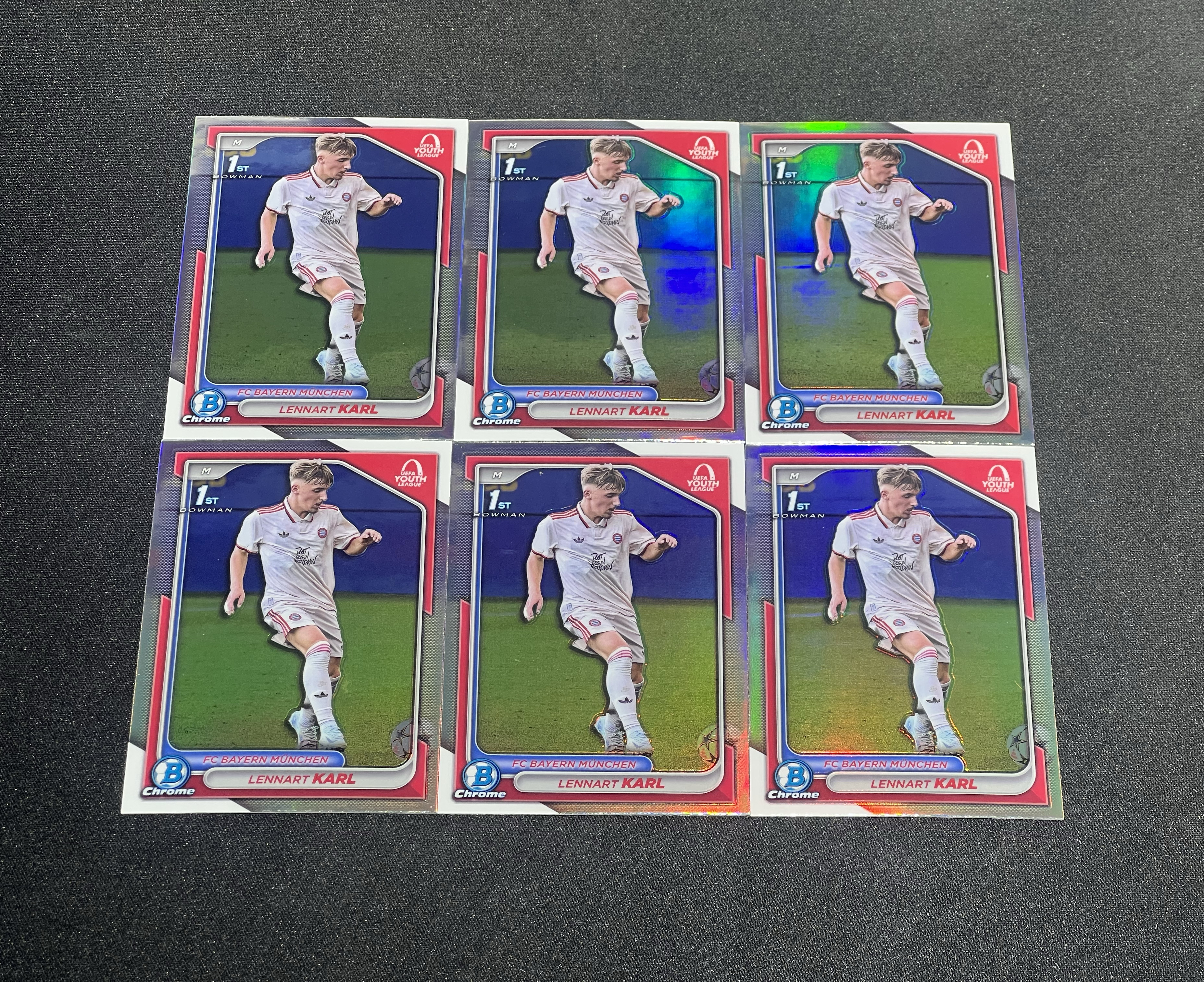 2025 Topps Chrome Lennart Karl RC 伦纳特 卡尔 银折 新秀 Bowman 1st 欧青赛 拜仁慕尼黑青训天才 身价暴涨 德国 6 Base张正银折打包lot 收藏必备