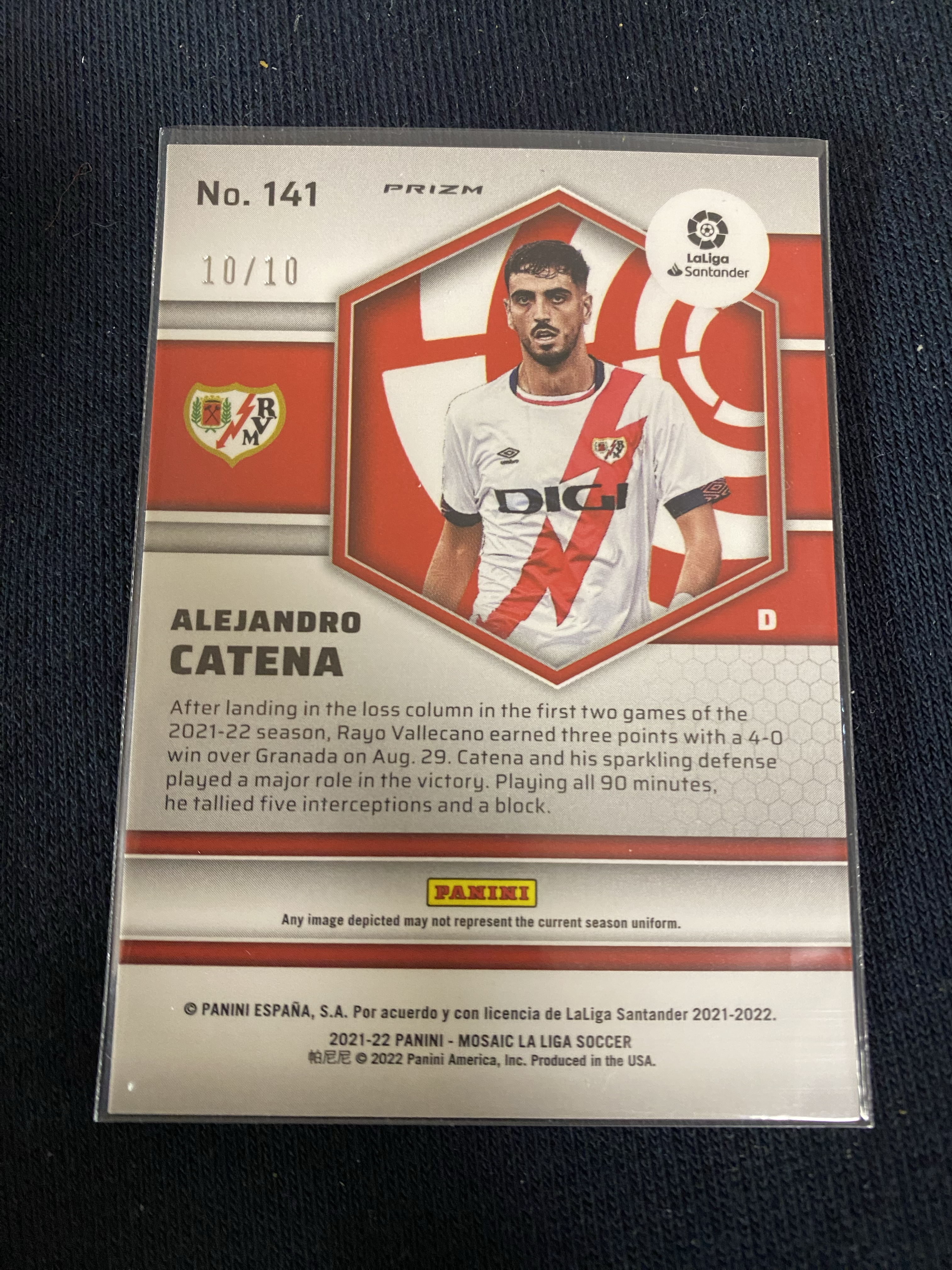 2021-22 Panini Mosaic Alejandro Catena RC 西甲 马赛克 金折 低编 尾编 10/10 新秀 卡特纳 巴列卡诺 卡品如图 收藏必备