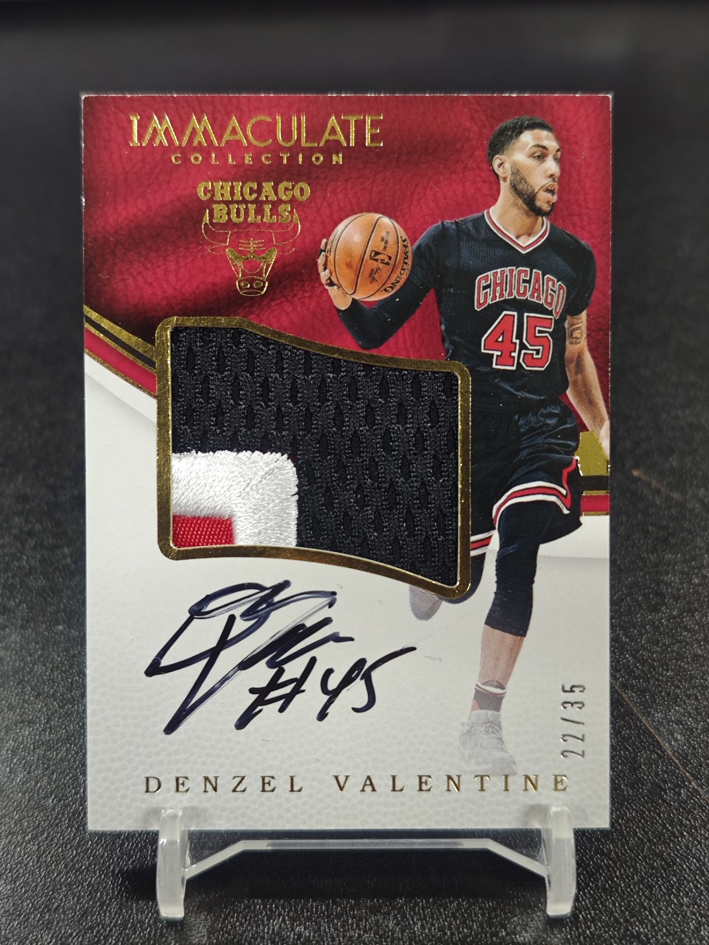 【浩行拍卖 截标预付82%】2016-17 panini Immaculate Valentine 公牛 丹泽尔 瓦伦丁 rc新秀 签字 卡签 背号签 球衣物料 大窗patch RPA 22/35编 金平行 瑕疵看图「冷雀」1104D04單