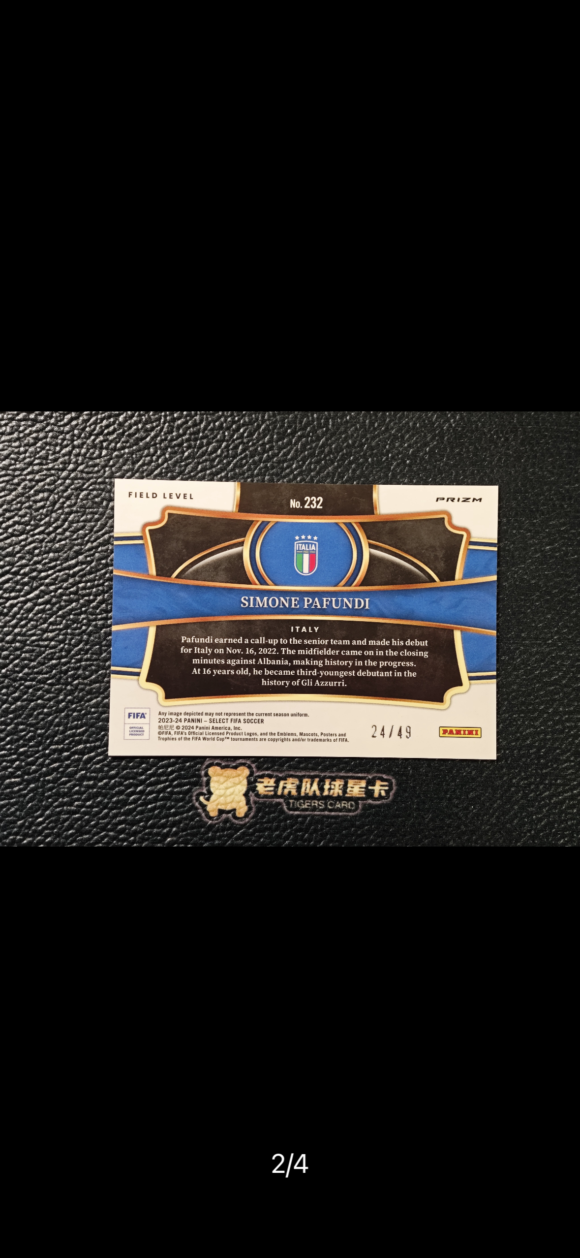 2023-24 Panini Select simone pafundi RC FIFA 西蒙尼 帕丰迪 三级 24/49编 低编 橙折 意大利 新秀