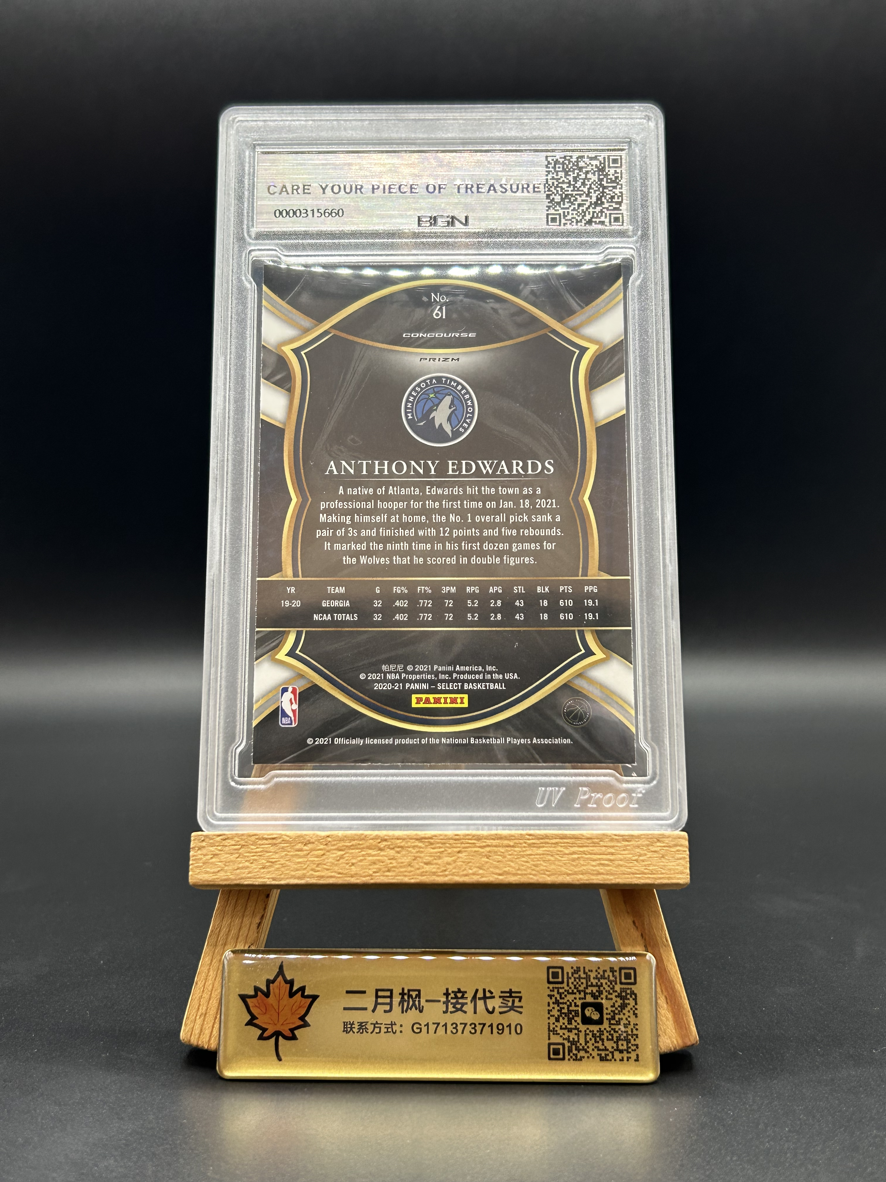 【二月枫-承接代卖】2020-21 帕尼尼 Panini Select 森林狼 Anthony Edwards 安东尼 爱德华兹 新秀RC 折射 红白橙三色瀑布折 BGN8.5分评级 投资必备 #何总