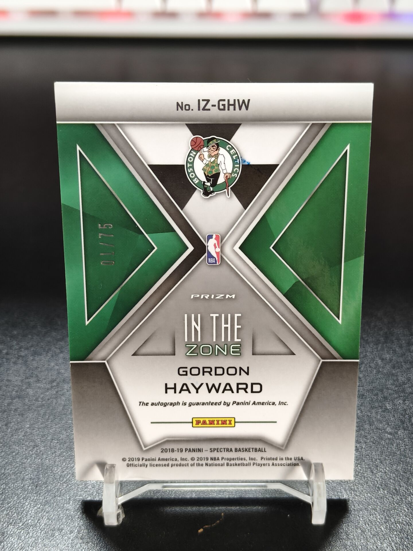 【浩行拍卖 截标预付82%】2018-19 panini spectra gordon hayward 光谱 凯尔特人 戈登 海沃德 银折 折射 签字 卡签 1/75编 首编 瑕疵看图 专收必备「尝仙」1105D04劉