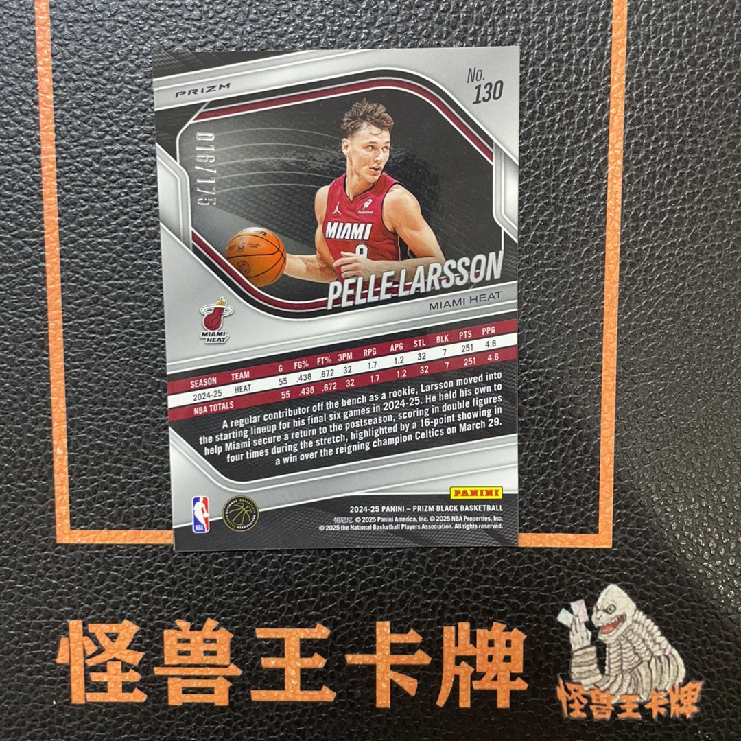 (怪兽拍卖) GSW-C14 2024-25 Panini Prizm black Pelle Larsson PZ 热火 佩莱 拉尔森 新秀RC 175编 白折 图3微瑕