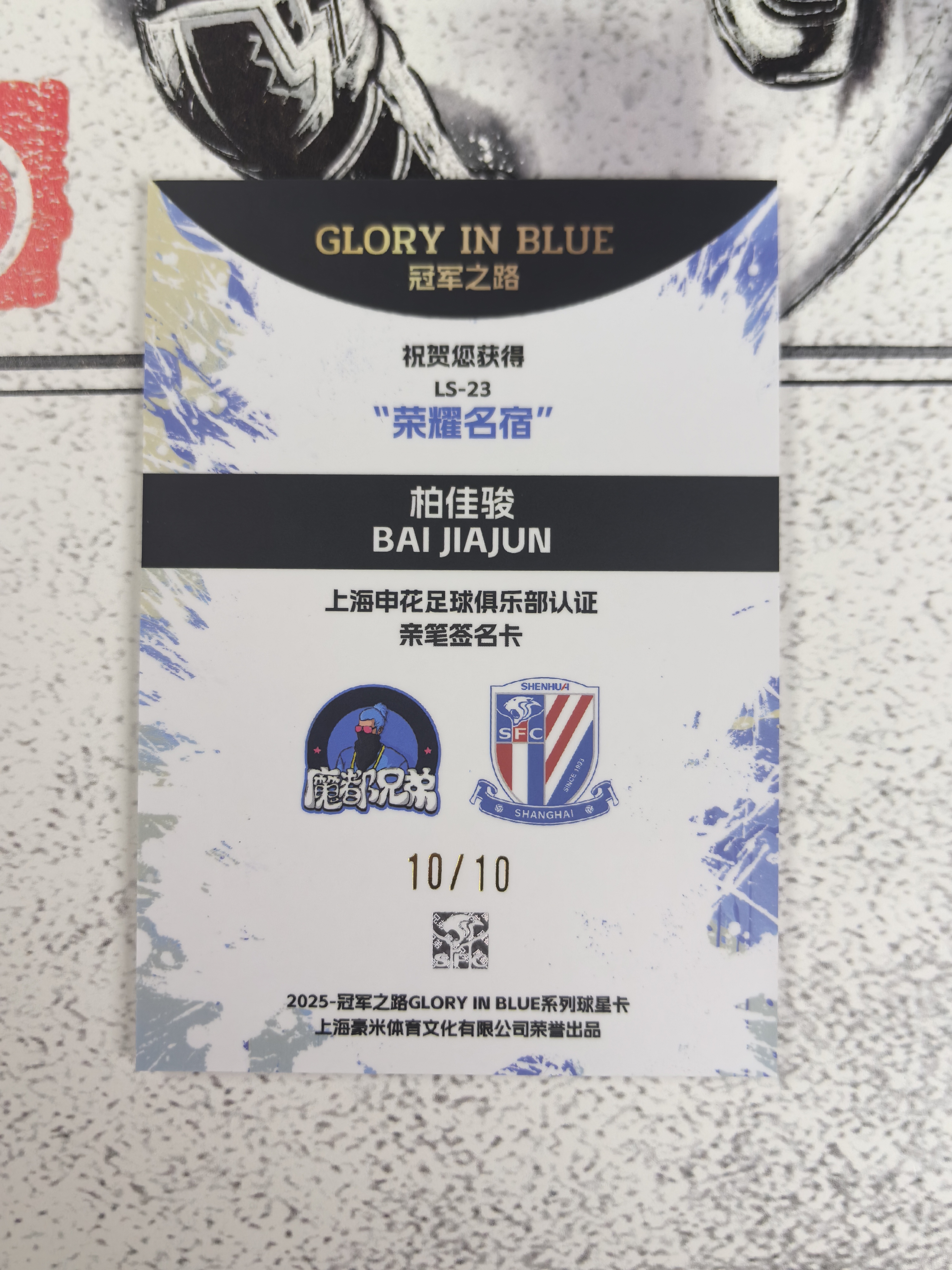 2025 上海豪米体育文化有限公司 申花冠军之路 柏佳骏 10/10编 签字 卡签 尾编 荣耀名宿 超低编 收藏凑套必备 XE03A 【西门拍卖】