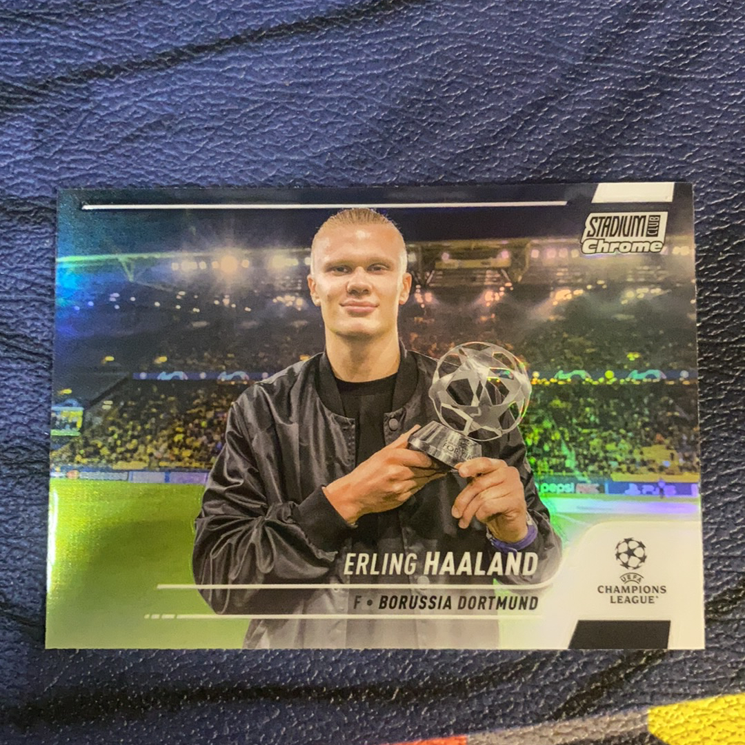 2022 Topps Stadium Club Chrome Erling Haaland 哈兰德 多特蒙德 欧冠 竞技场 大比例 捧杯 银折 收藏必备(tyk