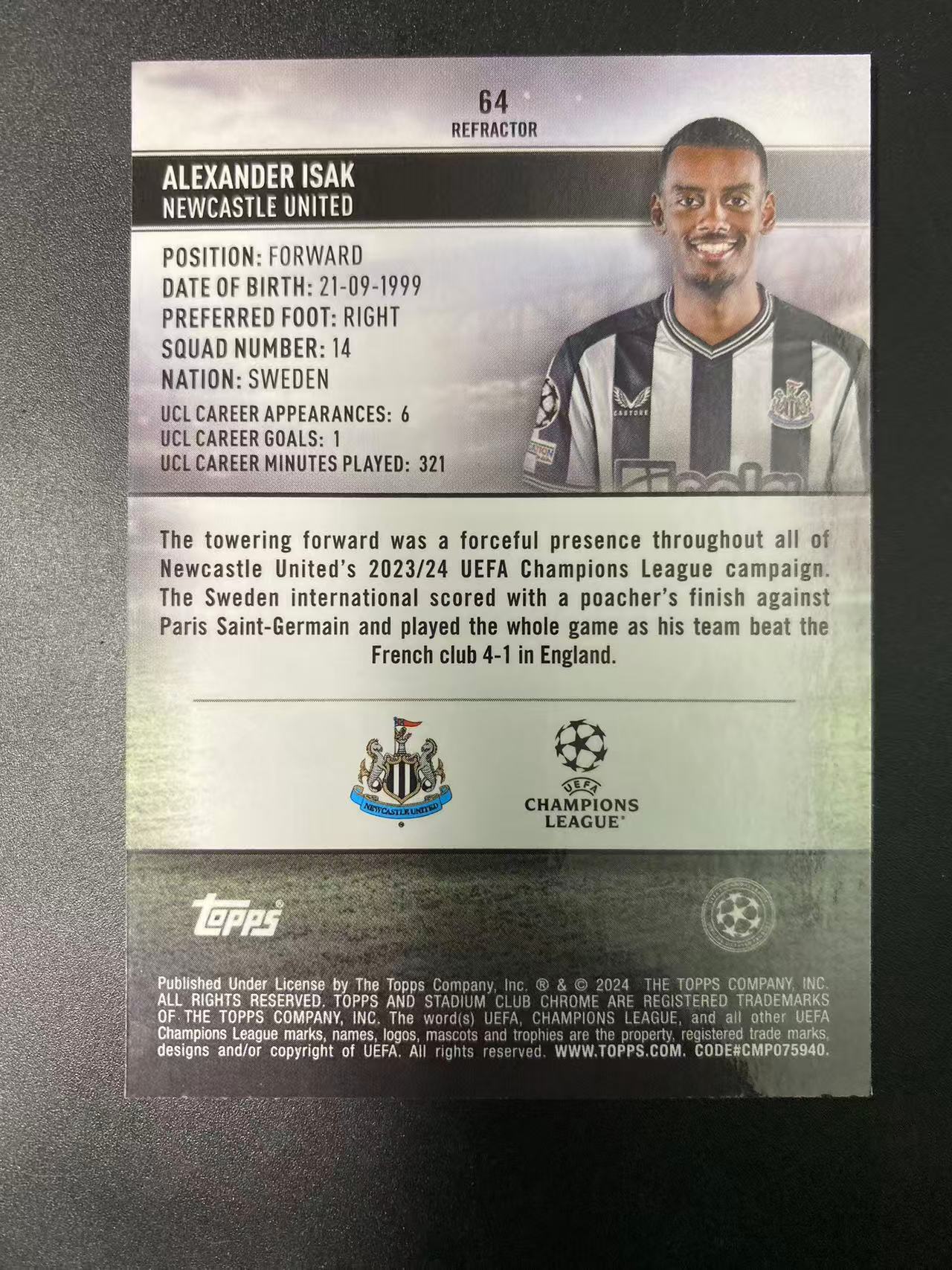 2024 Topps Stadium Club Chrome Alexander Isak 欧冠竞技场 纽卡斯尔联队 伊萨克 银折 卡品如图 微瑕