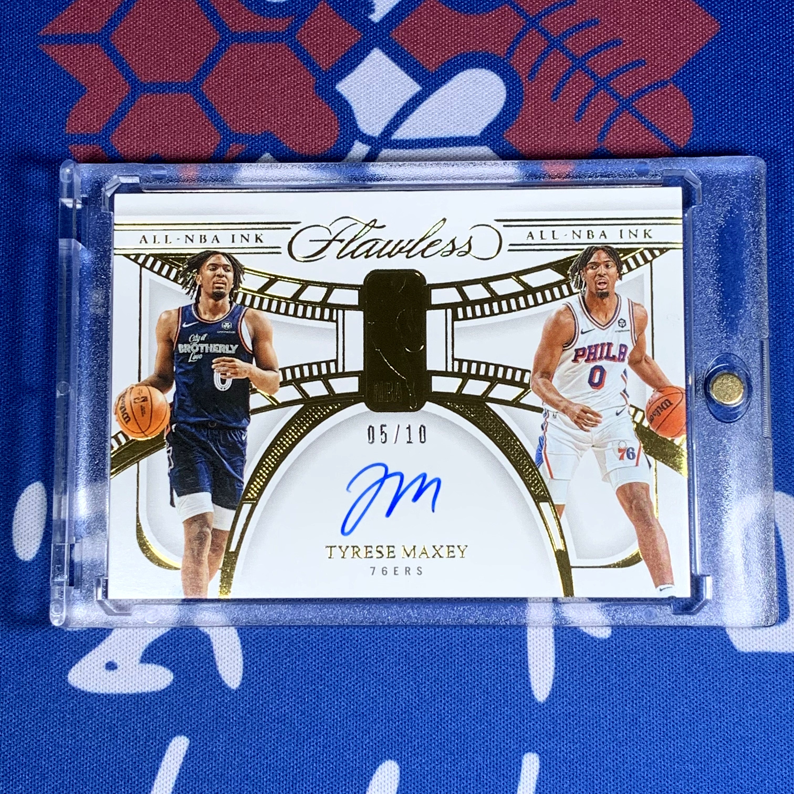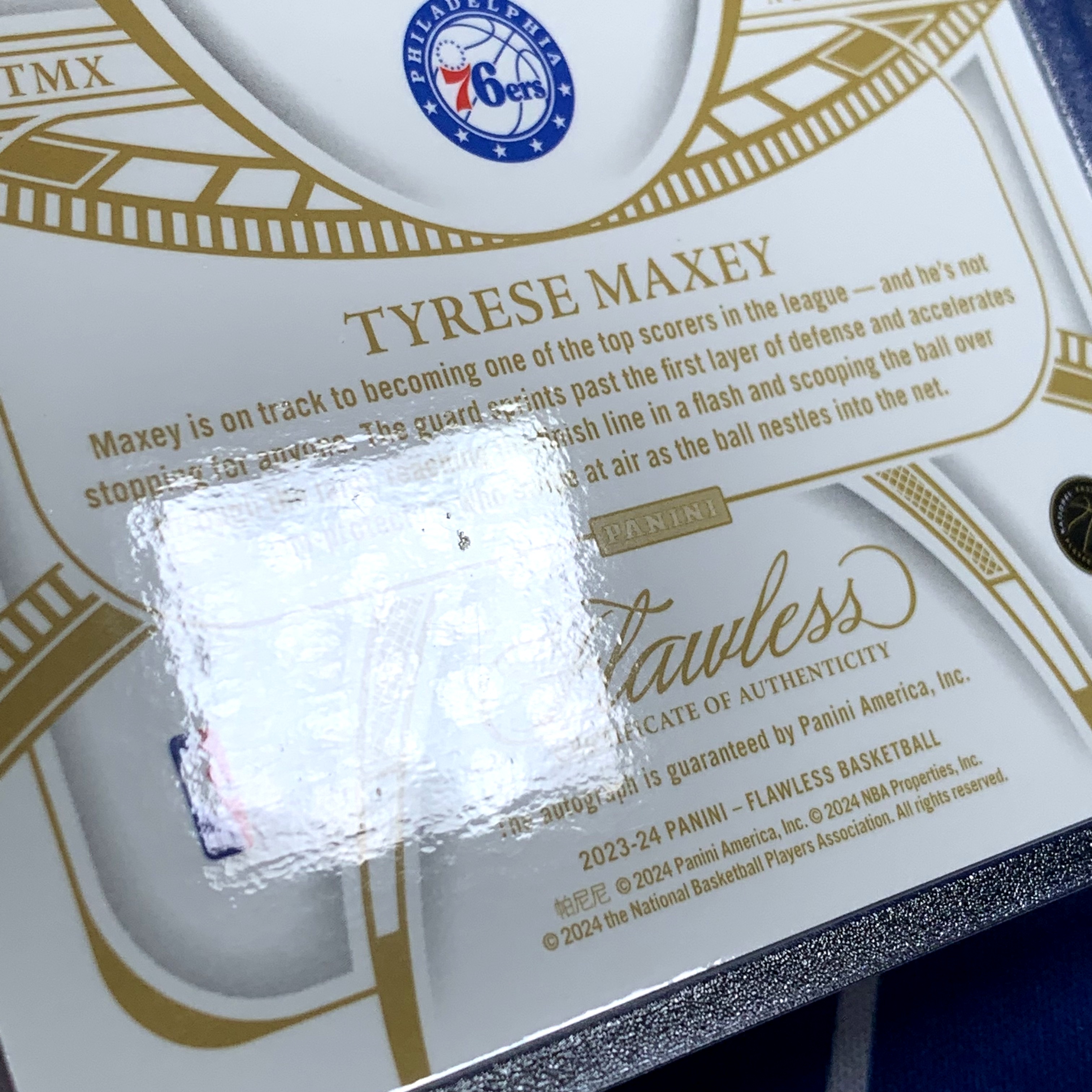2023-24 Panini Flawless Tyrese Maxey 【海宝】手提 76人 马克西 10编 金版 金折 前世今生设计 主客场 双选图 签字卡 卡签 轻印 凑套 收藏必备【GDW】