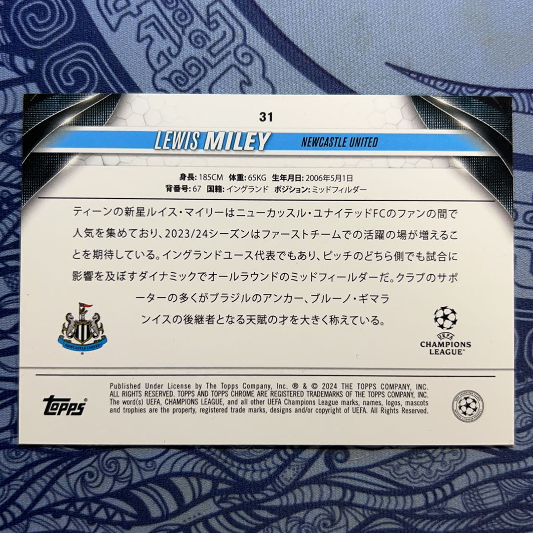 2023 Topps chrome Lewis Miley RC 英超 纽卡斯尔 英格兰 新秀 刘易斯 米利 麦利 50编 低编 金mojo折 折射 日版 硬卡 卡品如图 收藏必备