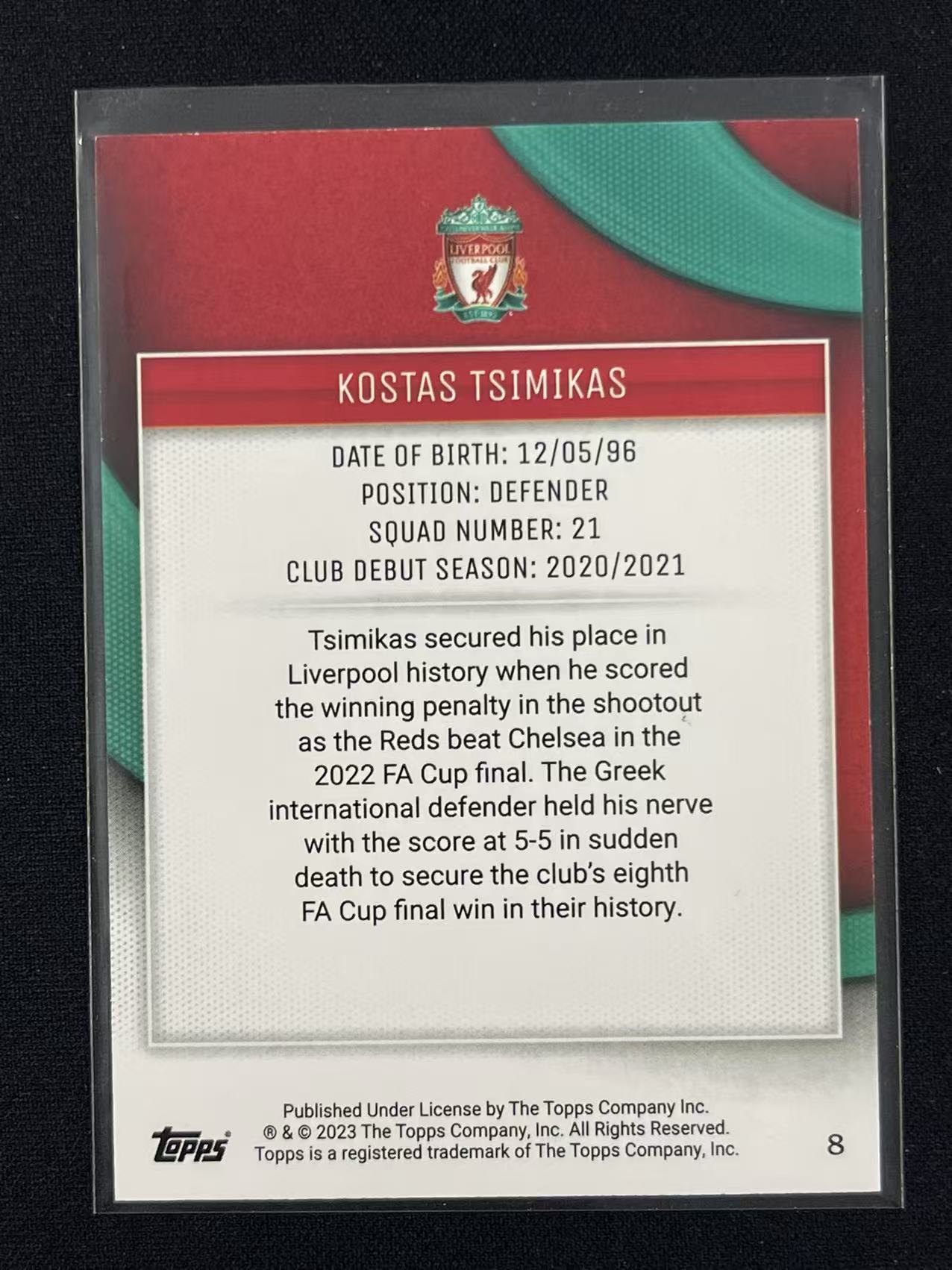 2023-24 Topps Liverpool Team Set Kostas Tsimikas 利物浦队盒 齐米卡斯 粉折 12/99编 Base 贝勒10