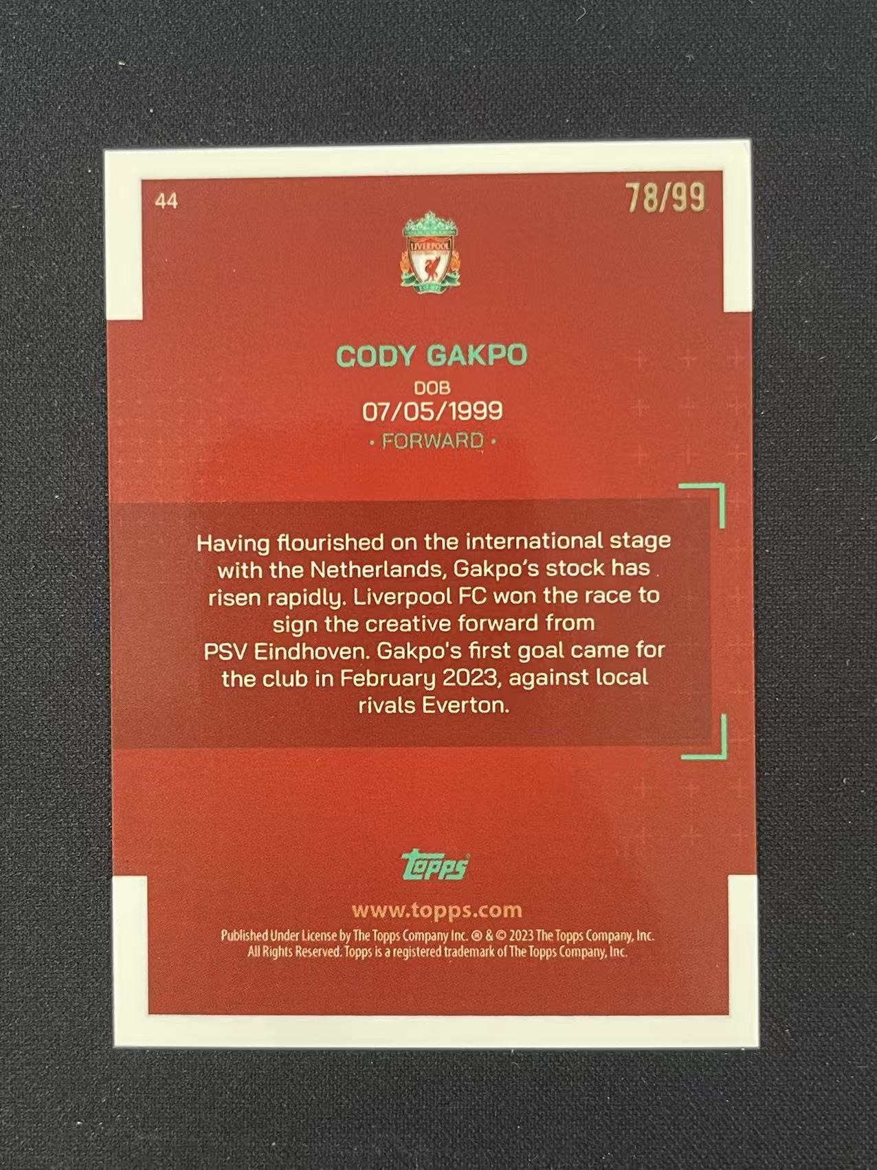 2022-23 Topps Liverpool Team Set Cody Gakpo  利物浦队盒 加克波 YNWA永不独行特卡 粉折 78/99编 贝勒11