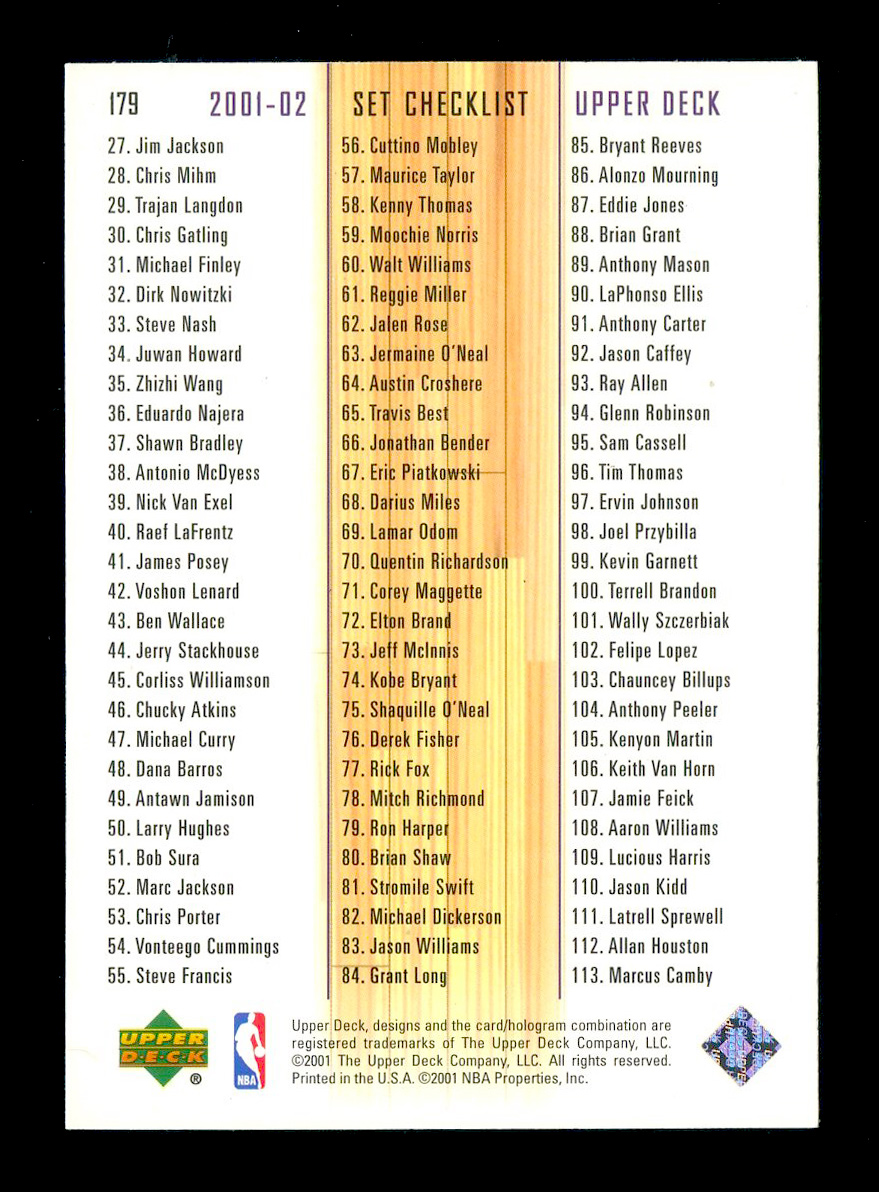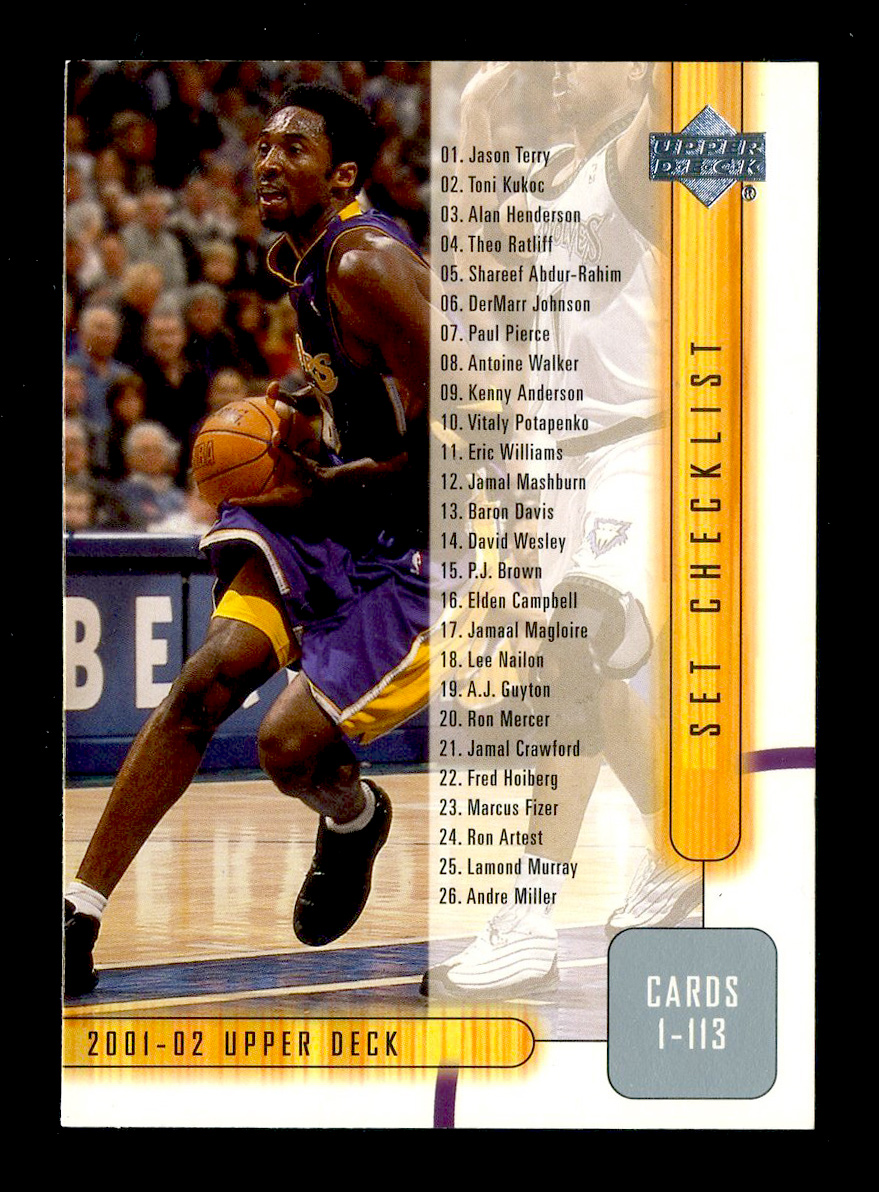 2001-02 UD Checklist Kobe Bryant科比布莱恩特目录卡