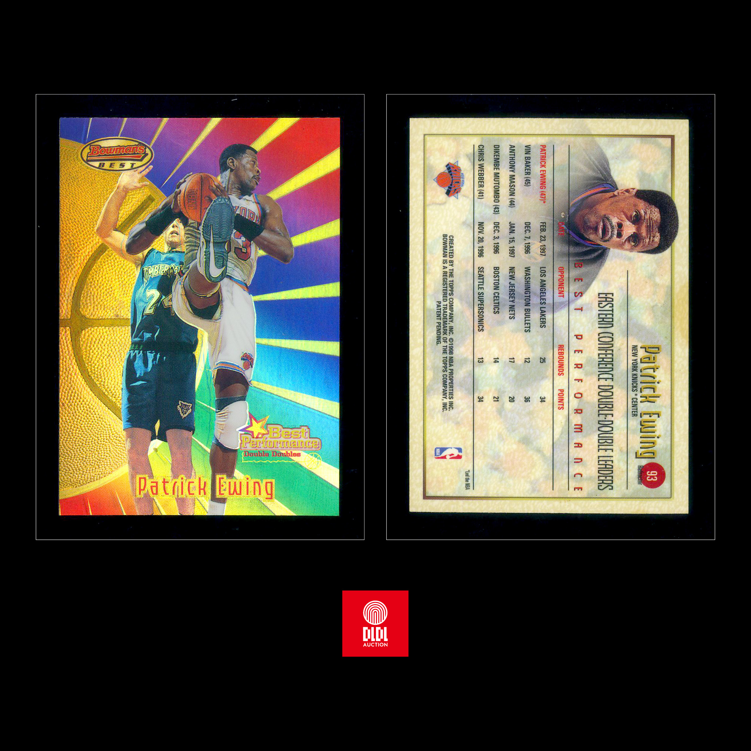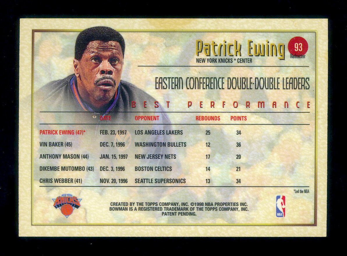1997-98 Bowman's Best BP REF Patric Ewing 最佳表现副卡 折射 大猩猩 尤因 纽约之王 折射鼻祖 经典金球射线设计