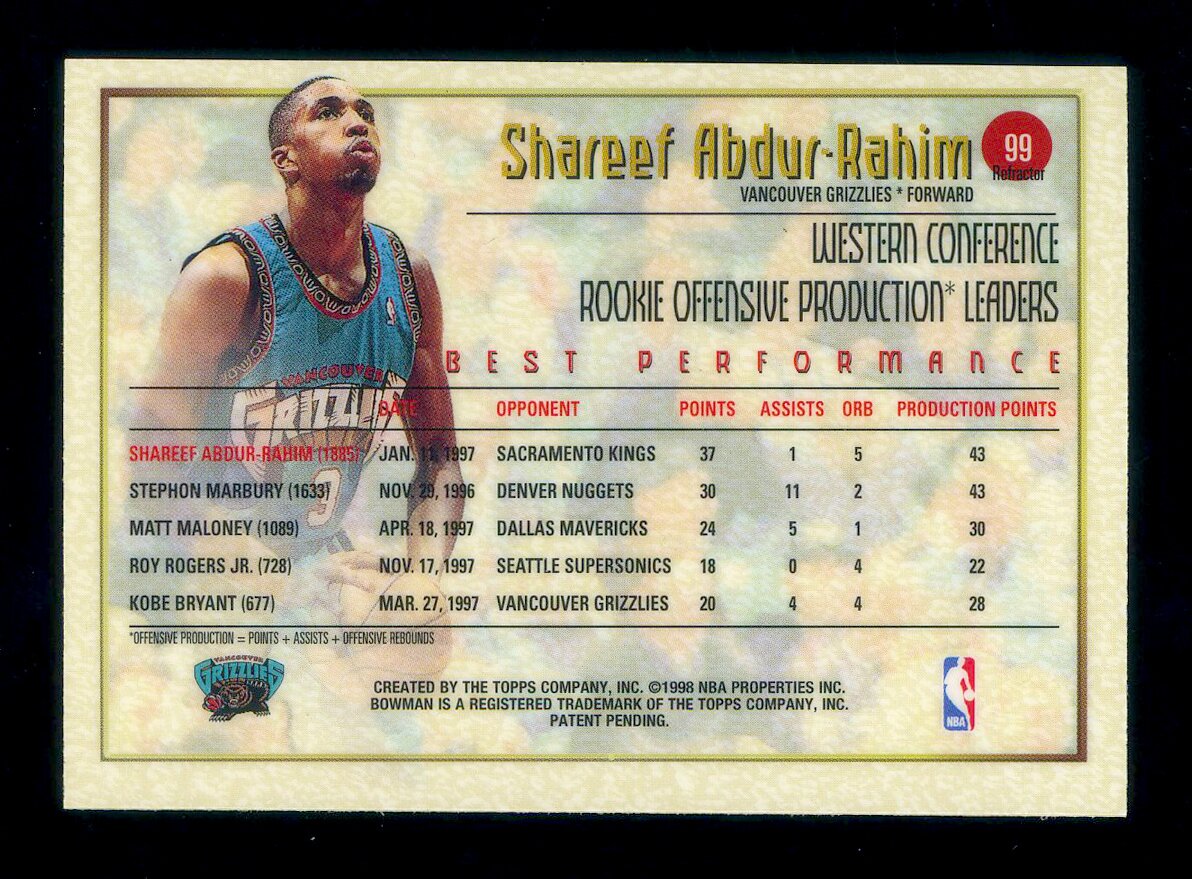 1997-98 Bowman's Best BP REF Shareef Abdul-Rahim 最佳表现副卡 折射 拉希姆 全能锋线 1996黄金一代 折射鼻祖 经典金球射线设计