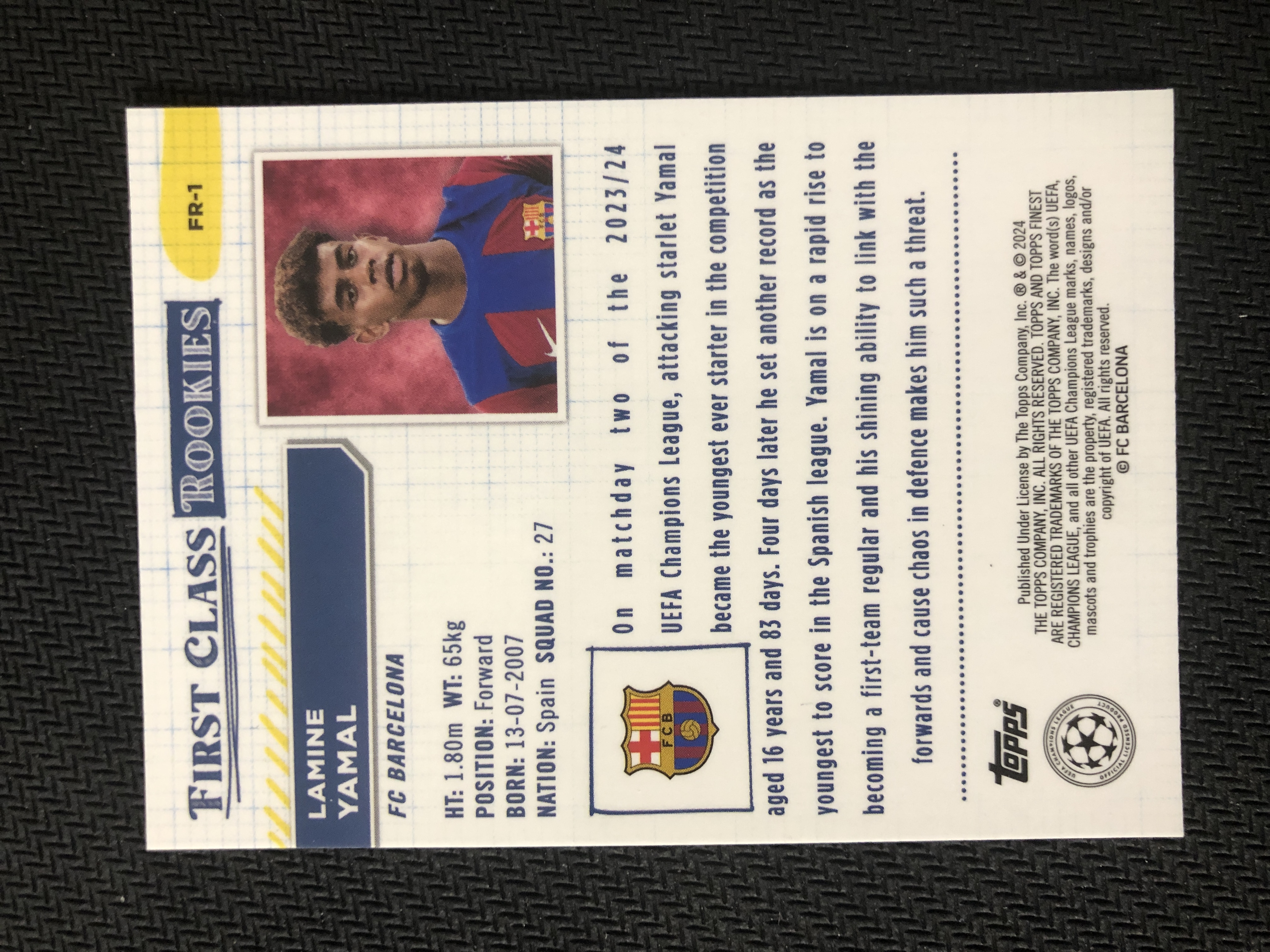 2024 Topps Finest Lamine Yamal RC 欧战 Finest 拉明 亚马尔 银折 特卡 巴萨 西班牙 新秀 FIRST CLASS ROOKIES 卡品如图