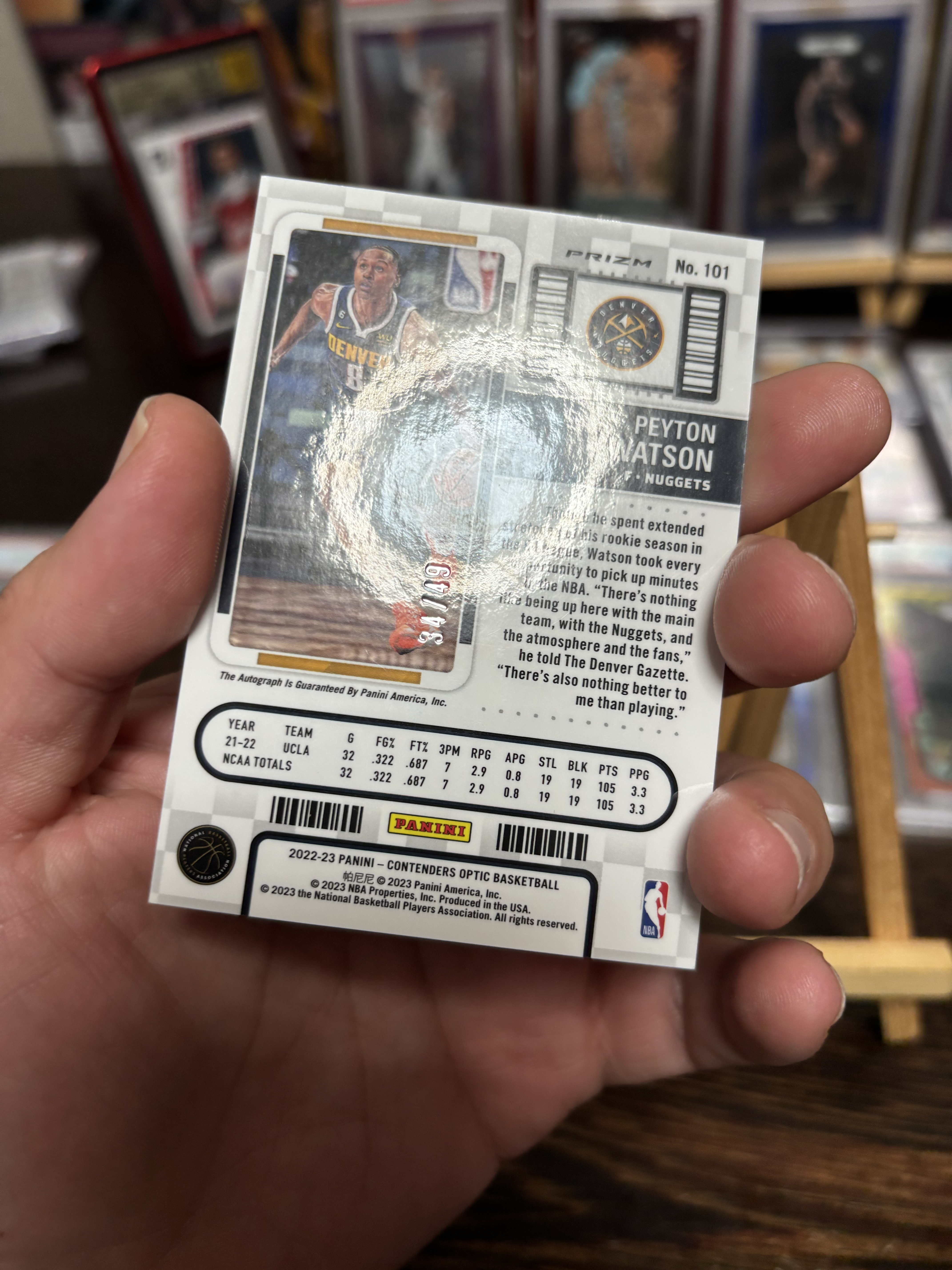 2022-23 Panini Contenders Peyton Watson RC (球探拍卖)22-23球票 沃特森 新秀 49编 签字 蓝折 卡品如图 介意勿拍 句号