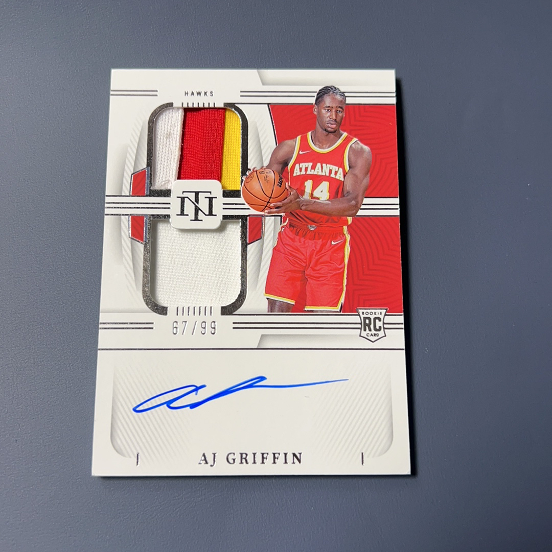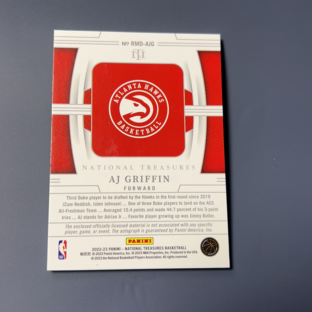 2022-23 Panini National Treasures AJ Griffin RC 格里芬 亚特兰大老鹰 双窗 球衣 暴力切割 三色球衣 签字 卡签 67/99编 收藏必备 凑套必备