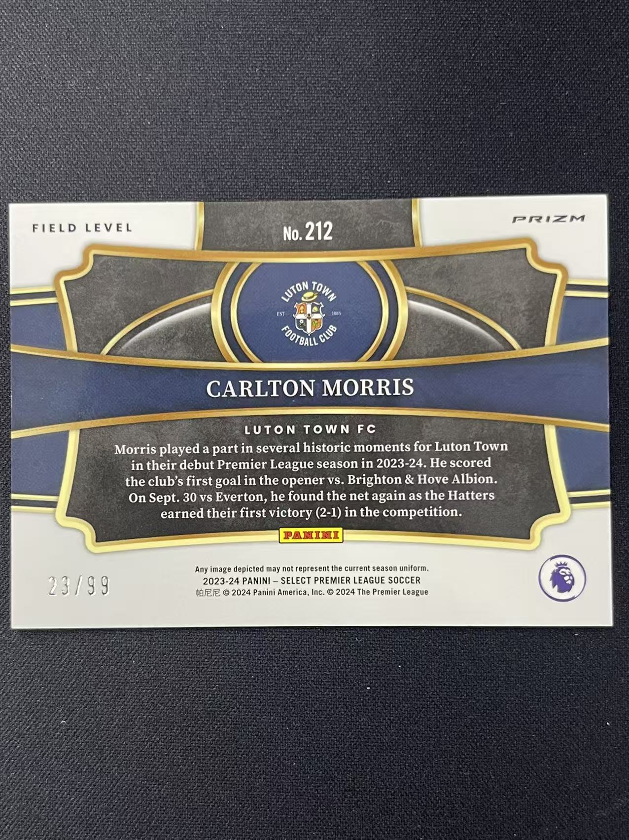 2023-24 Panini Select Premier League Carlton Morris #212 卡尔顿 莫里斯 新秀RC 卢顿 三级 粉折 23/99编 贝勒05