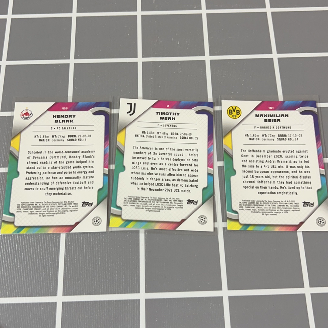 2025 Topps Finest Timothy Weah 欧冠 尤文图斯 萨尔茨堡红牛 多特蒙德 维阿 布兰克rc 三张125编 粉棱镜折打包 lot