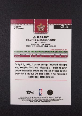 线下门店交流:上海市静安区广中西路777弄308室 The Big M Hobby球星卡牌店 门店客服v:17521198205 快递问题:初设定顺丰快递全国邮费为18元,如需到付请私信( 订单总金额低于10元以下不到付,避免拒签望理解谢谢!!!),安徽14元,(江苏,浙江,上海 12元)偏远地区和超重默认到付,注意本店不发京东 存卡及合并问题:(带编可合并5张或存5张邮寄一次,非带编可合并10张或存10张邮寄一次只合并当天订单快递同理,签字物料只合并当天订单不参与存卡服务)如另有特殊要求,提前联系,可商议更改。(代拍商品!!!卡品如图!!!)