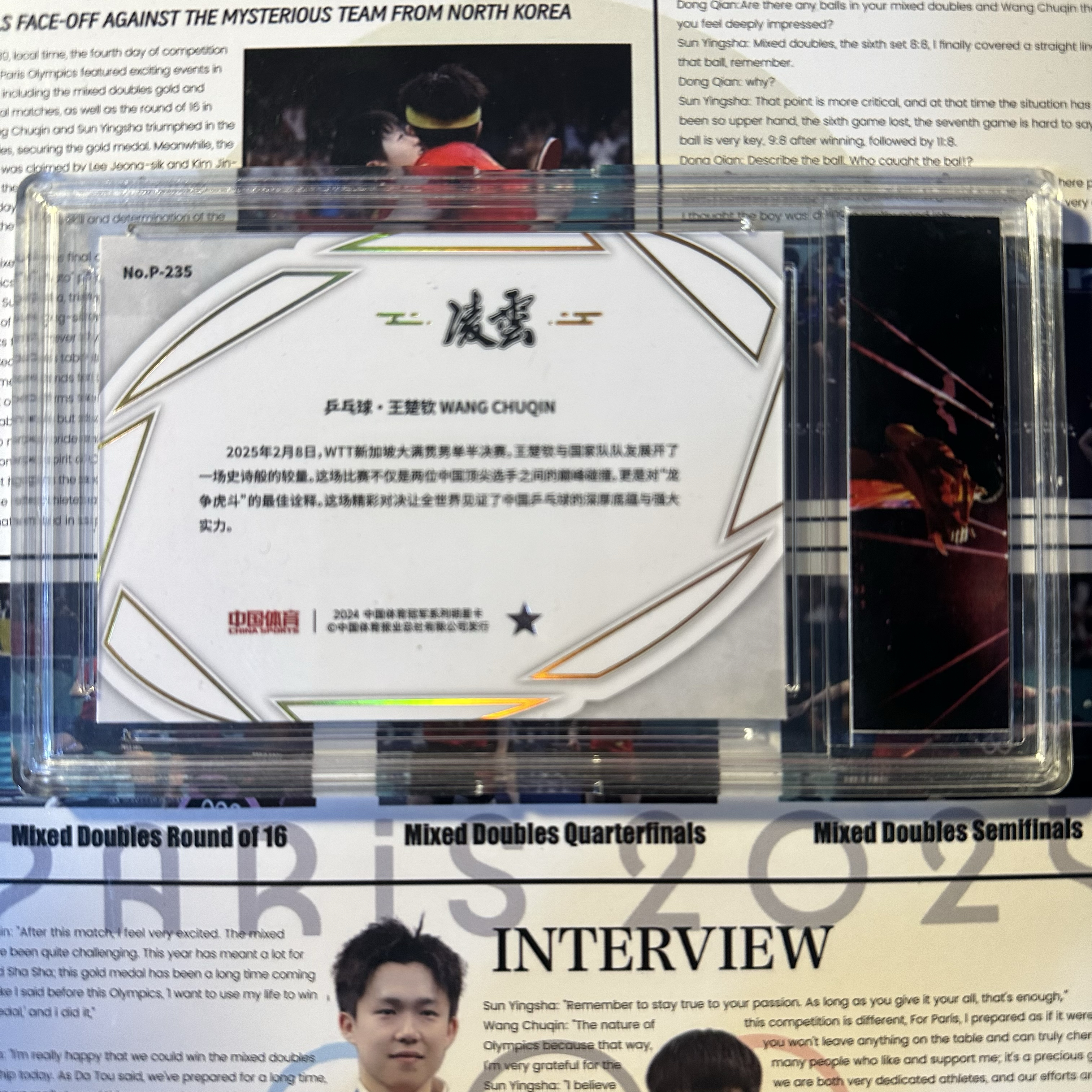 2024 奇卡 QICA 中国体育 凌云 王楚钦 乒乓球 王楚钦 银折 赛场表现 奥运会冠军 世界冠军 孙颖莎 林诗栋 林高远 队友 卡品如图 含卡砖 卡品如图