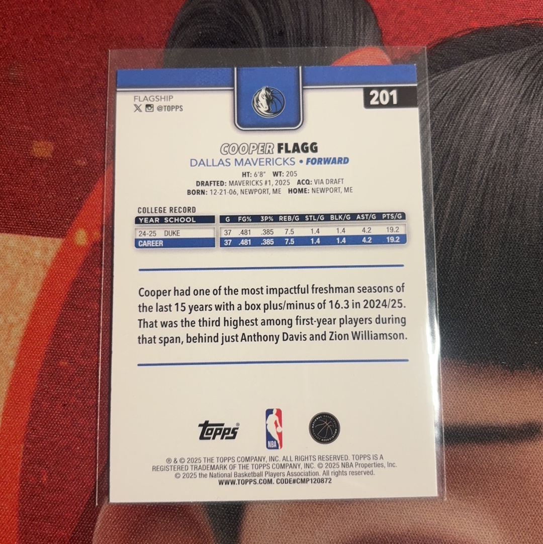 2025 Topps - Cooper Flagg RC 独行侠 新秀 状元 库珀 弗拉格 美国之子 base 收藏必备 卡品如图