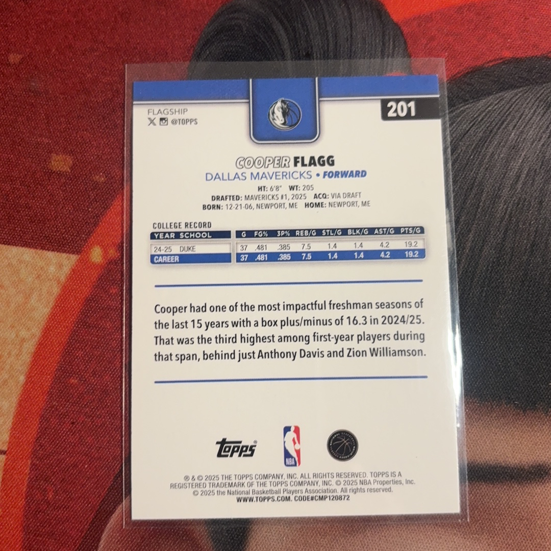 2025 Topps - Cooper Flagg RC 独行侠 新秀 状元 库珀 弗拉格 美国之子 base 收藏必备 卡品如图