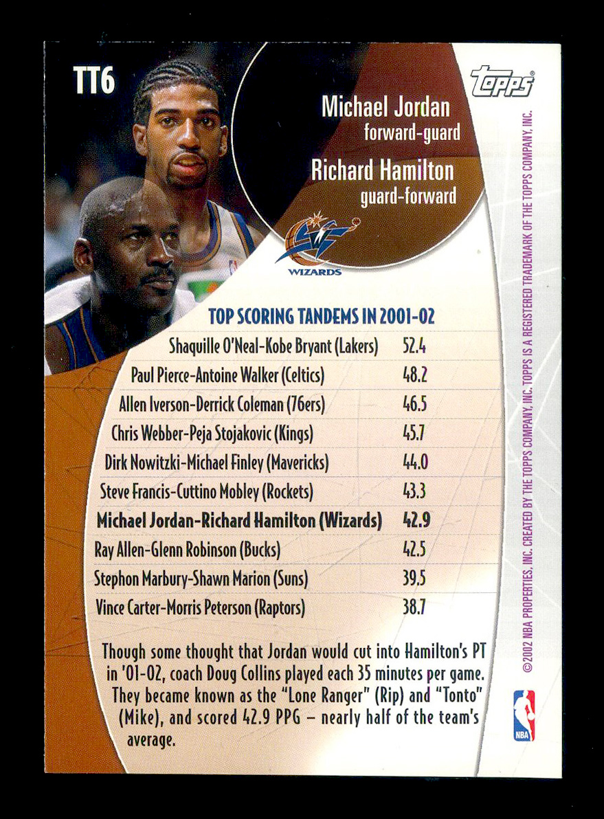 2002-03 Topps Top Tandems Michael Jordan 迈克尔乔丹搭档哈密尔顿华盛顿奇才场均42.9联盟第六OK第一真理头陀第二答案科尔曼第三