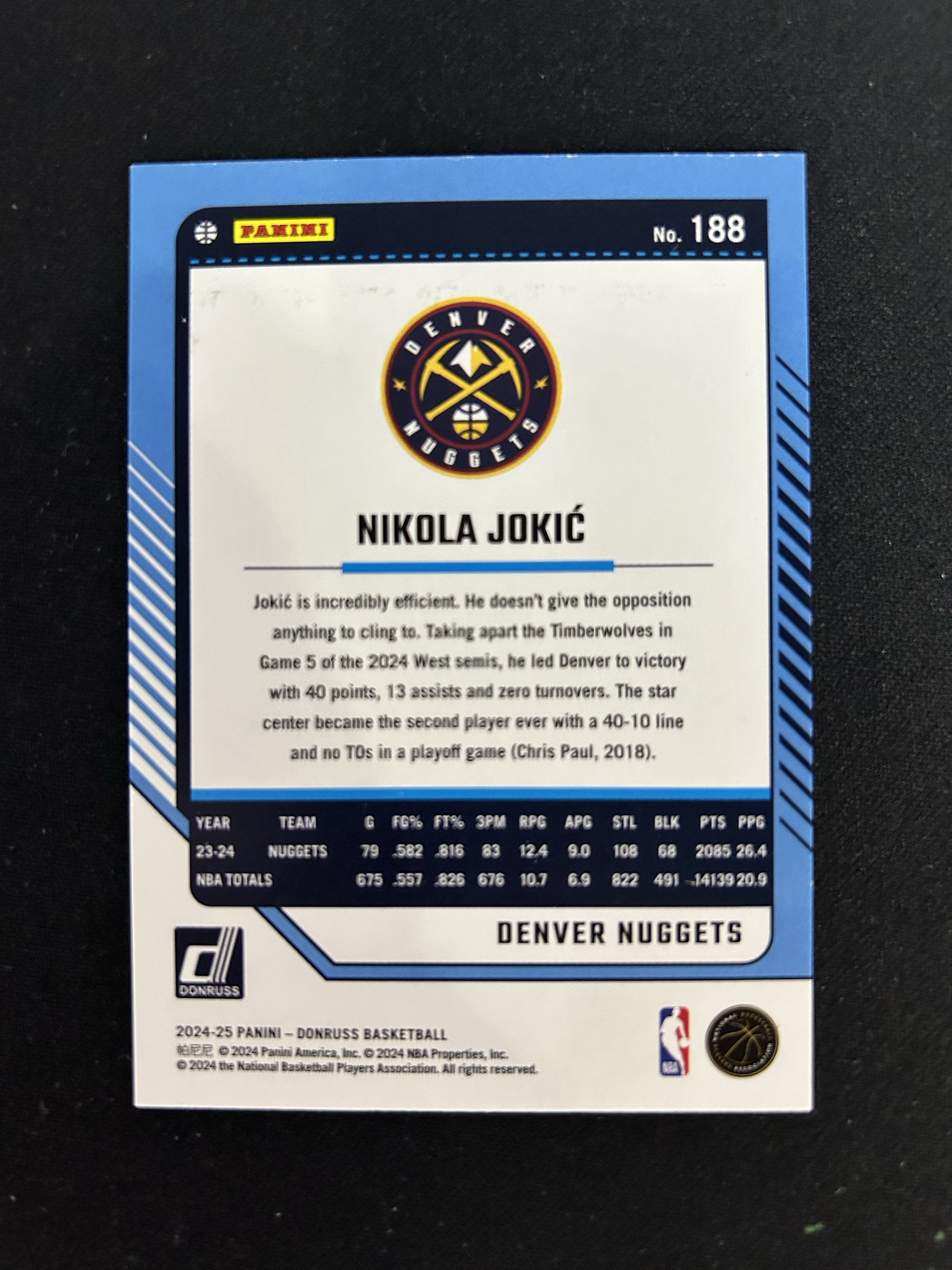 2024-25 Panini Donruss Nikola Jokic 杜蕾斯 掘金 尼古拉 约基奇 约老师 金佛光折 折射 3/10编 卡品如图