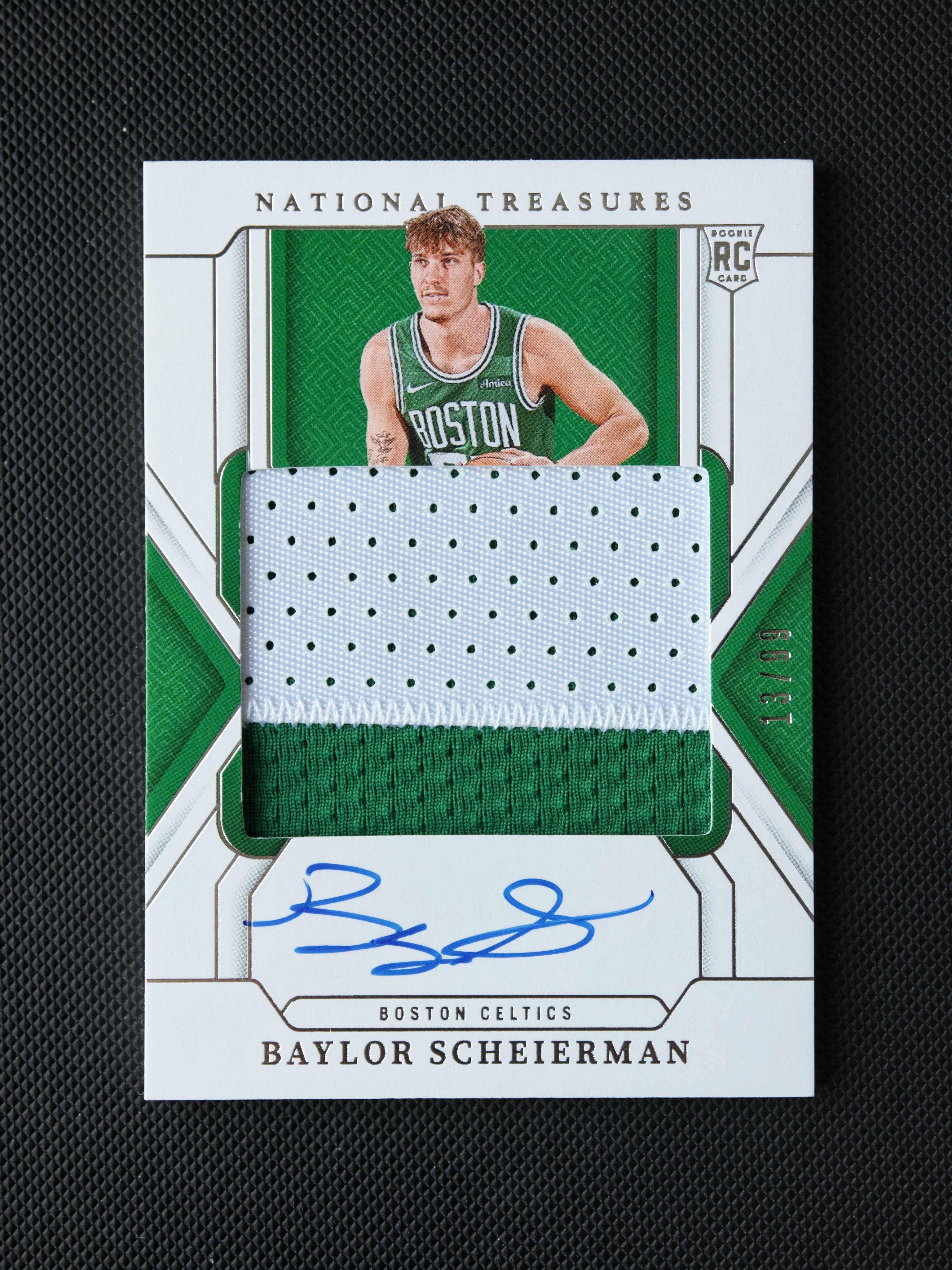 2024-25 Panini National Treasures Baylor Scheierman RC 凯尔特人首轮新秀 贝勒 沙伊尔曼 99编国宝正RPA 亲笔卡签 塔图姆受伤机会增加 卡角如图
