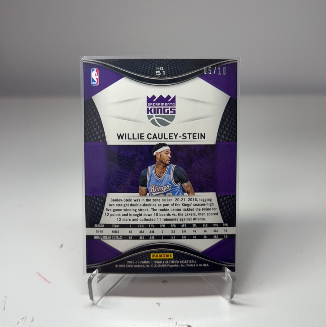 2016-17 Panini Certified Willie Cauley Stein 【免费代卖】国王 威利 考利 斯坦 /10编 金折 带编 折射 卡品如图 值得收藏!!