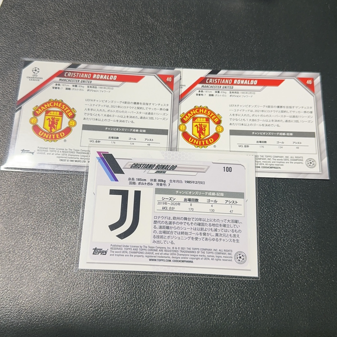2021-22 Topps UEFA Champions League Cristiano Ronaldo 曼联 尤文图斯 克里斯蒂亚诺 罗纳尔多 脱衣罗 金球先生 葡萄牙队长 3张base lot