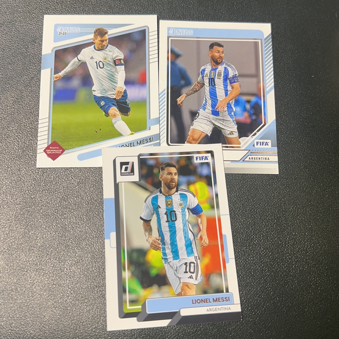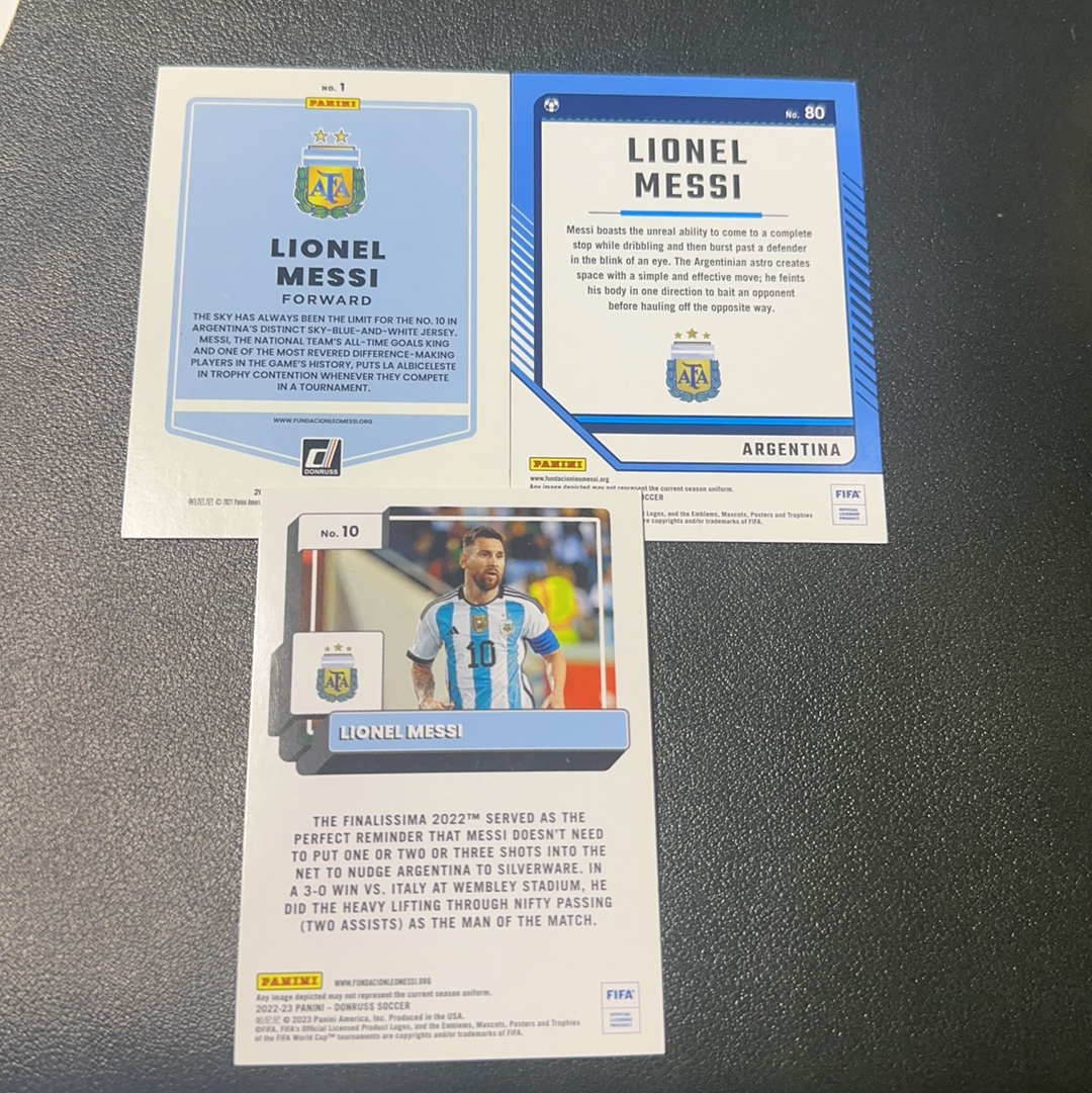 2023 Panini UEFA Champions League Lionel Messi 阿根廷 队长 世界杯冠军 金球先生 里奥 梅西 巴萨 巴黎 卡塔尔 夺冠年 3张打包lot