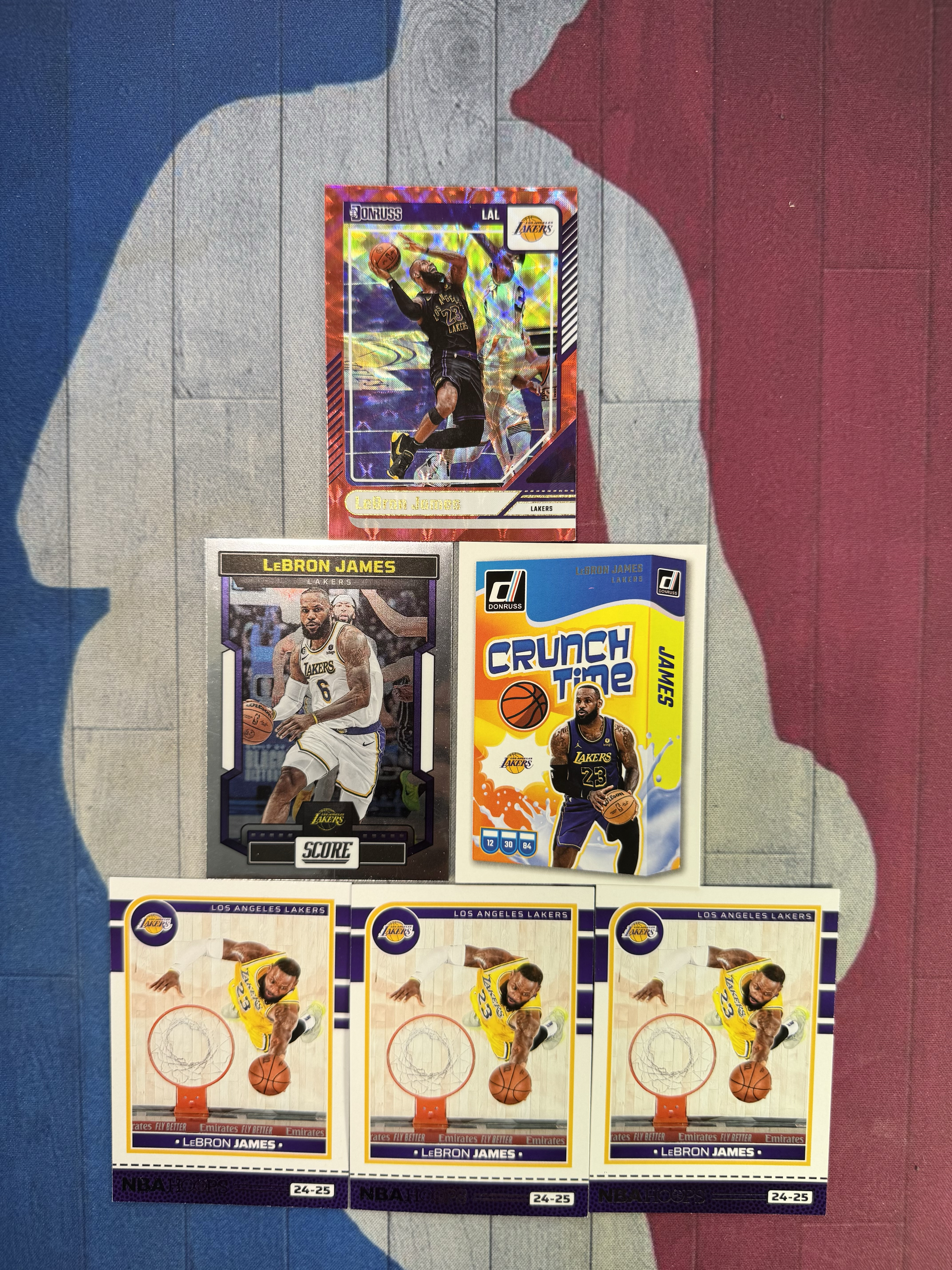 2024-25 Panini Donruss LeBron James 囧哥/杜蕾斯 湖人老大 勒布朗詹姆斯 联盟历史得分王小皇帝 红钻石折射带队 6张lot 不保卡品售出不退换/小马