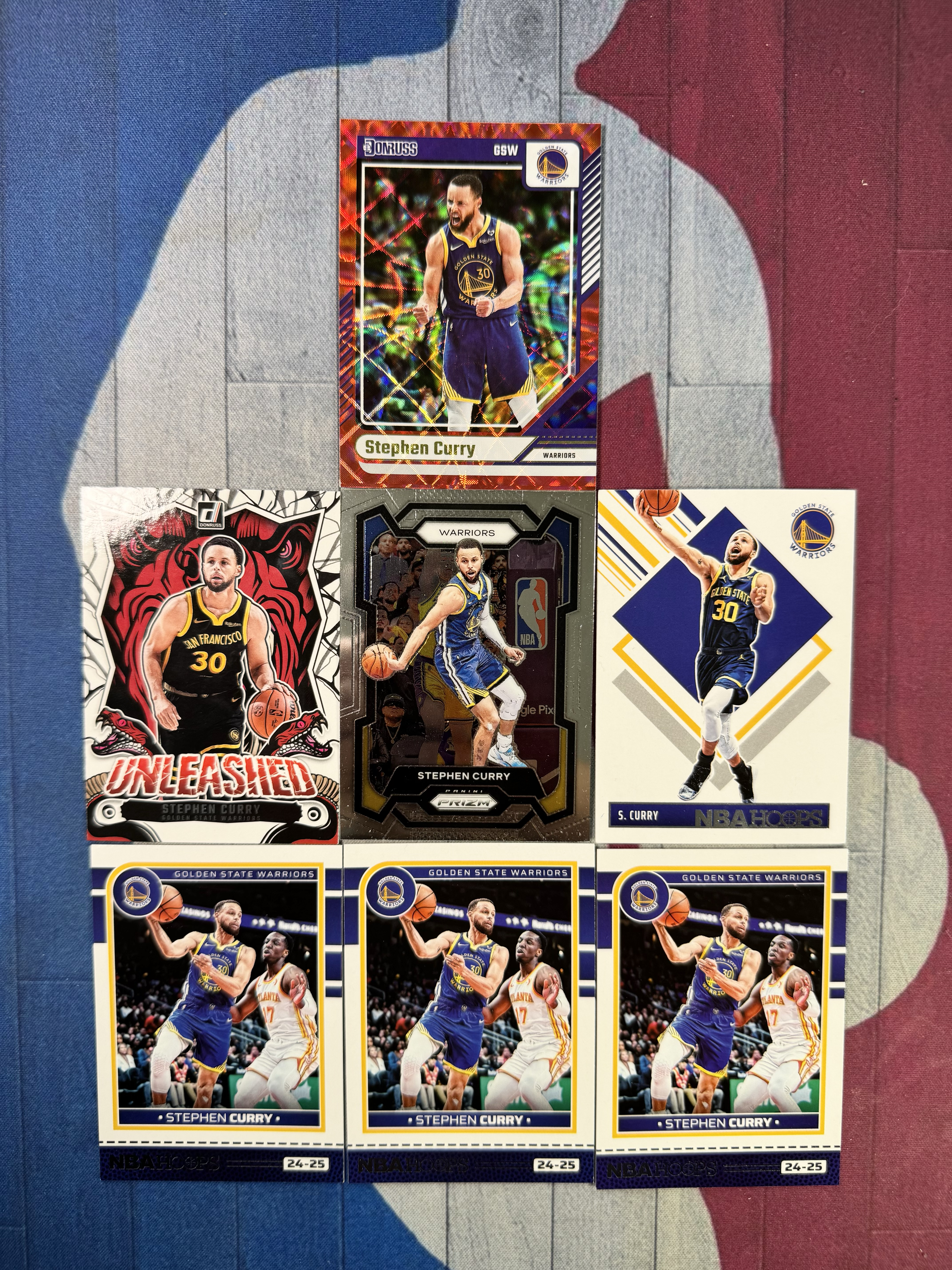2024-25 Panini Donruss Stephen Curry 囧哥/杜蕾斯 勇士老大 斯蒂芬库里 联盟历史三分王 红钻石折射带队 7张lot 不保卡品 售出不退换/小马