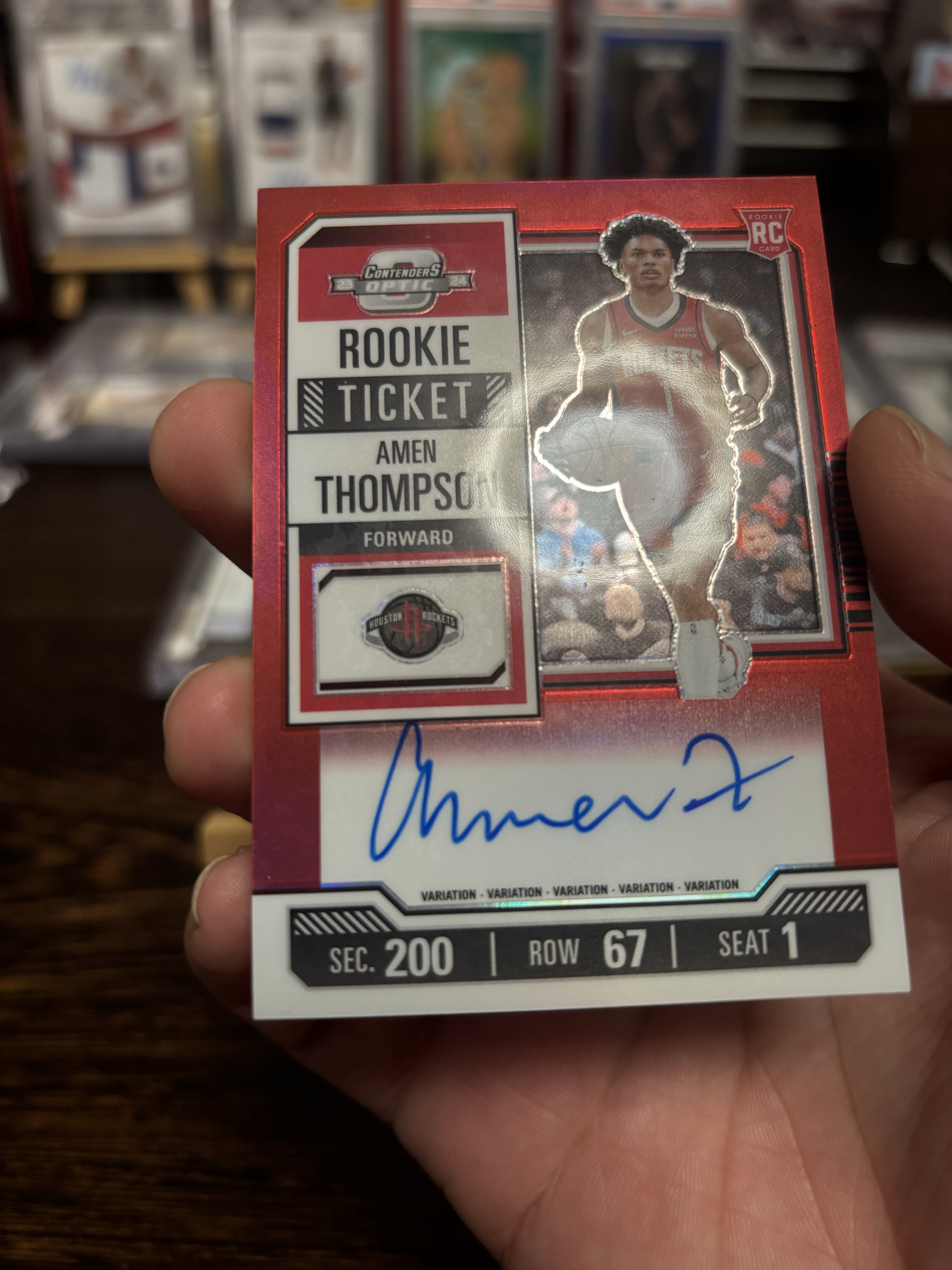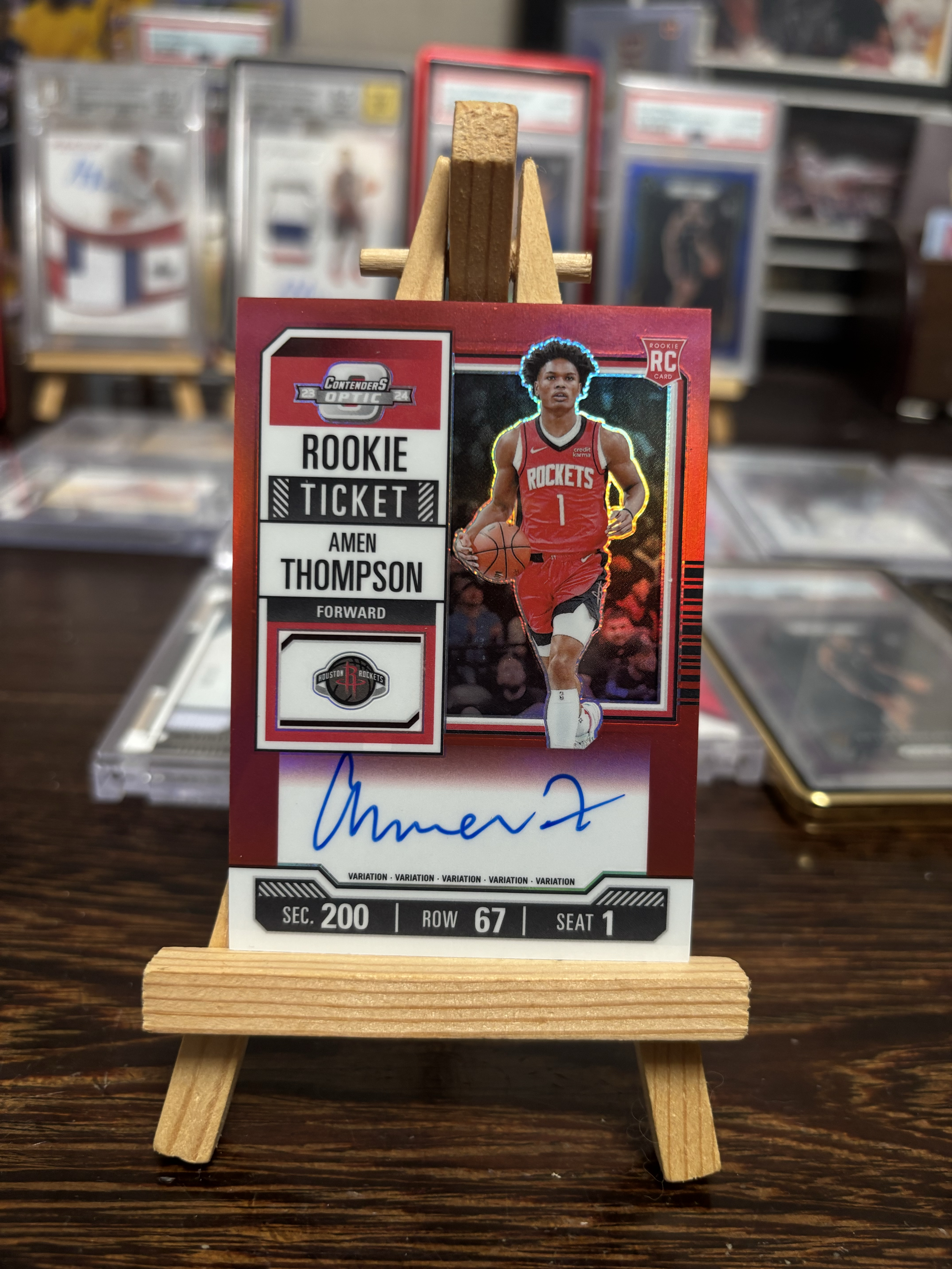 2023-24 Panini Contenders Amen Thompson RC (球探拍卖)23-24 球票 阿门 汤普森 新秀 球票 签字 红折 99编 卡品如图 介意勿拍