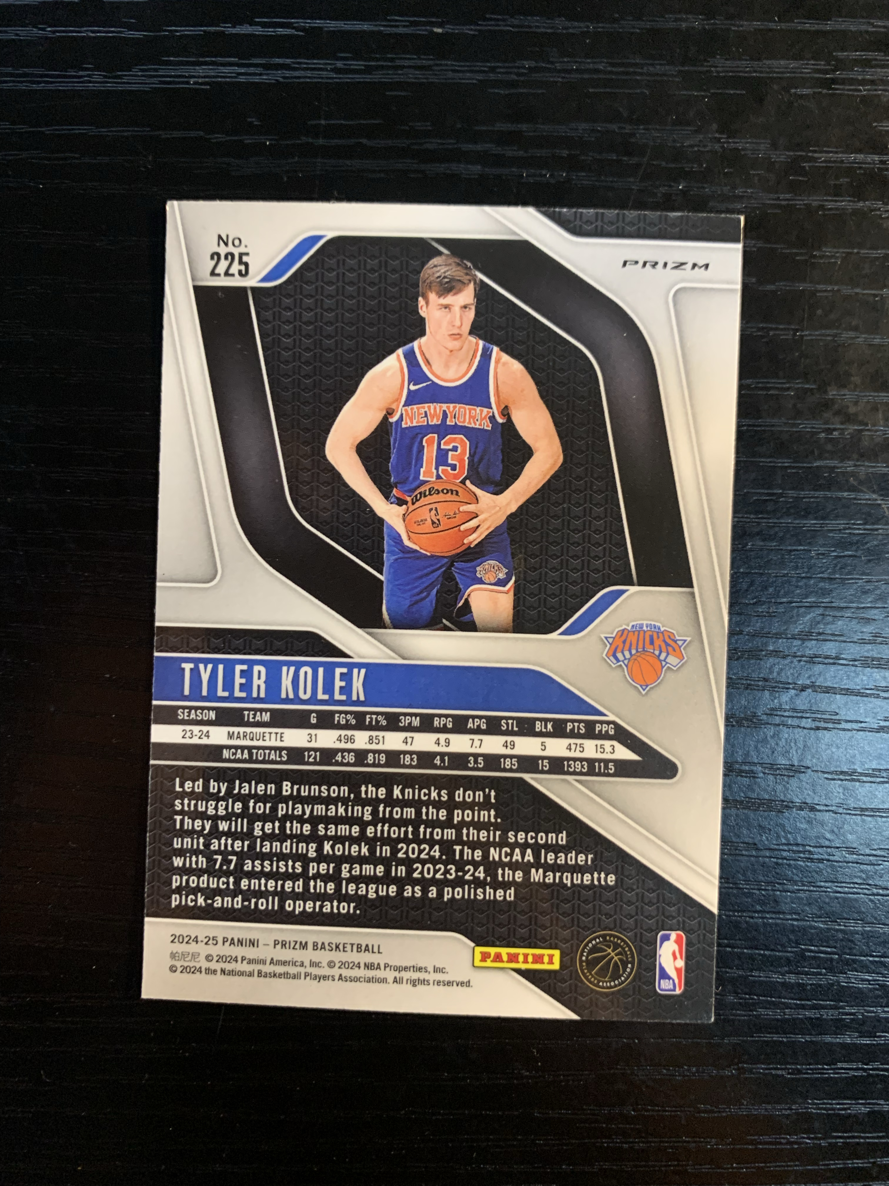 2024-25 PANINI PRIZM TYLER KOLEK 泰勒 科莱克 新秀 RC PZ 中文 折射 粉碎冰折 尼克斯 篮球 k
