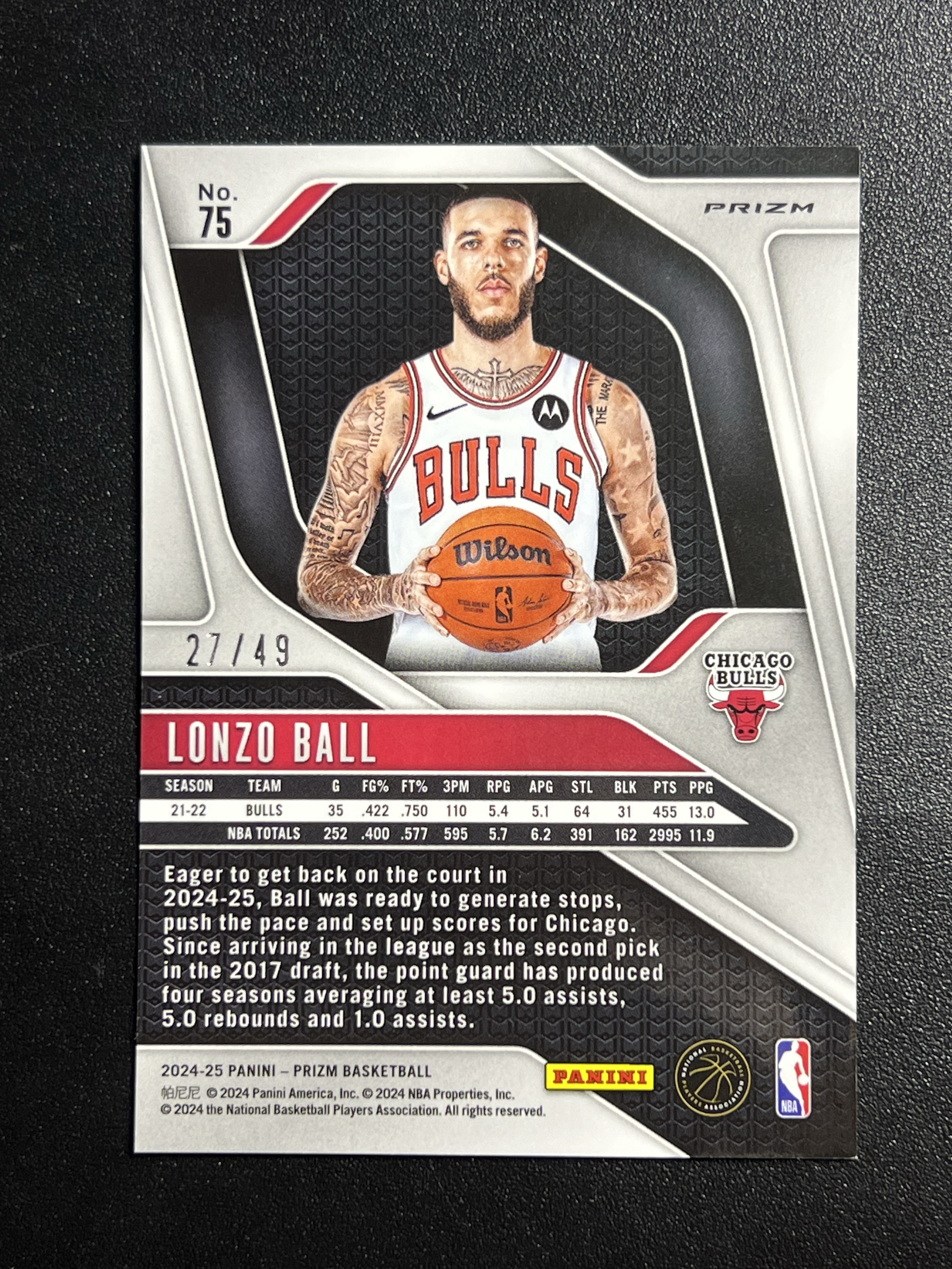 2024-25 Panini Prizm Lonzo Ball pz 公牛 朗佐 鲍尔 49编 蓝圈圈折 折射 叉叉拍卖