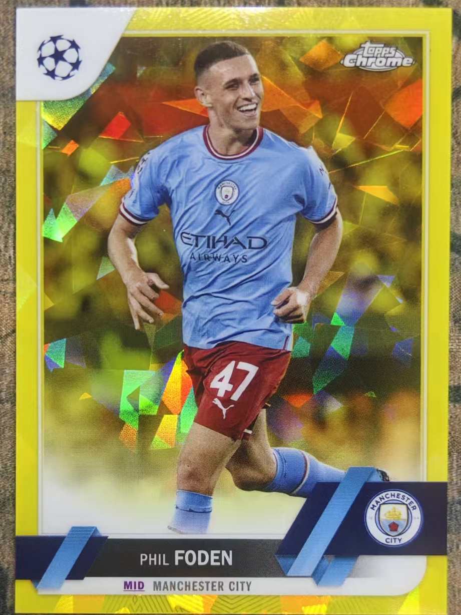 2023 Topps UEFA Champions League Phil Foden 【K星代拍】欧冠蓝宝石 曼城 菲尔 福登 太子 27/99编 黄宝石 卡品如图