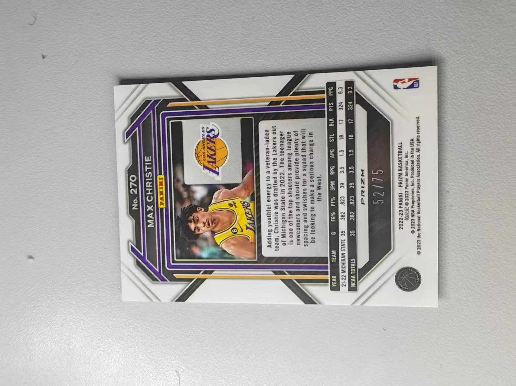 2022-23 Panini prizm Max Christie RC 湖人 麦克斯 克里斯蒂 PZ 新秀 紫泡泡折 折射 75编