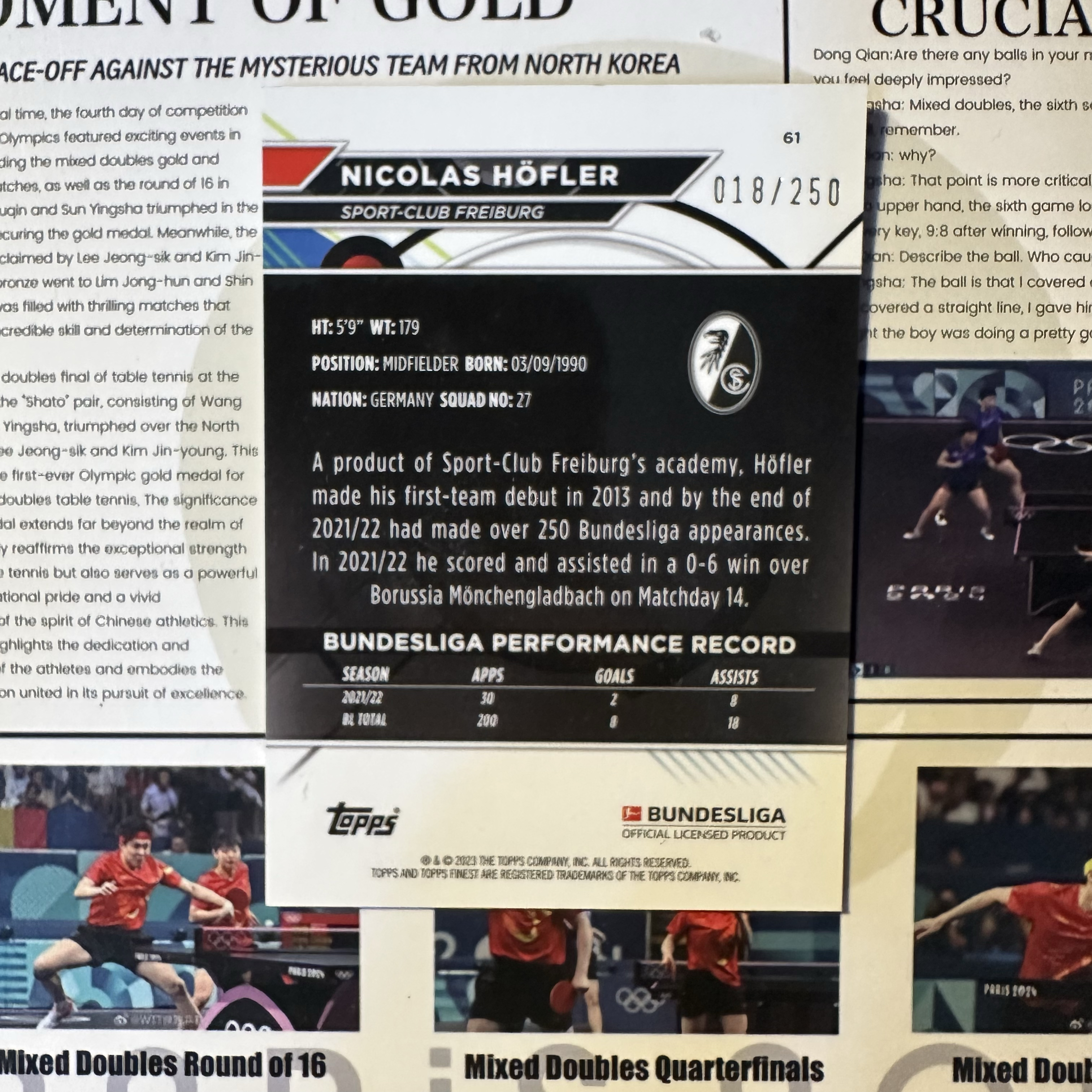 2023 Topps Finest 尼古拉斯 Nicolas Hofler 尼古拉斯赫夫勒 2023 Topps Finest 德甲 250编 紫波纹折射 弗赖堡 卡品如图 不保卡品