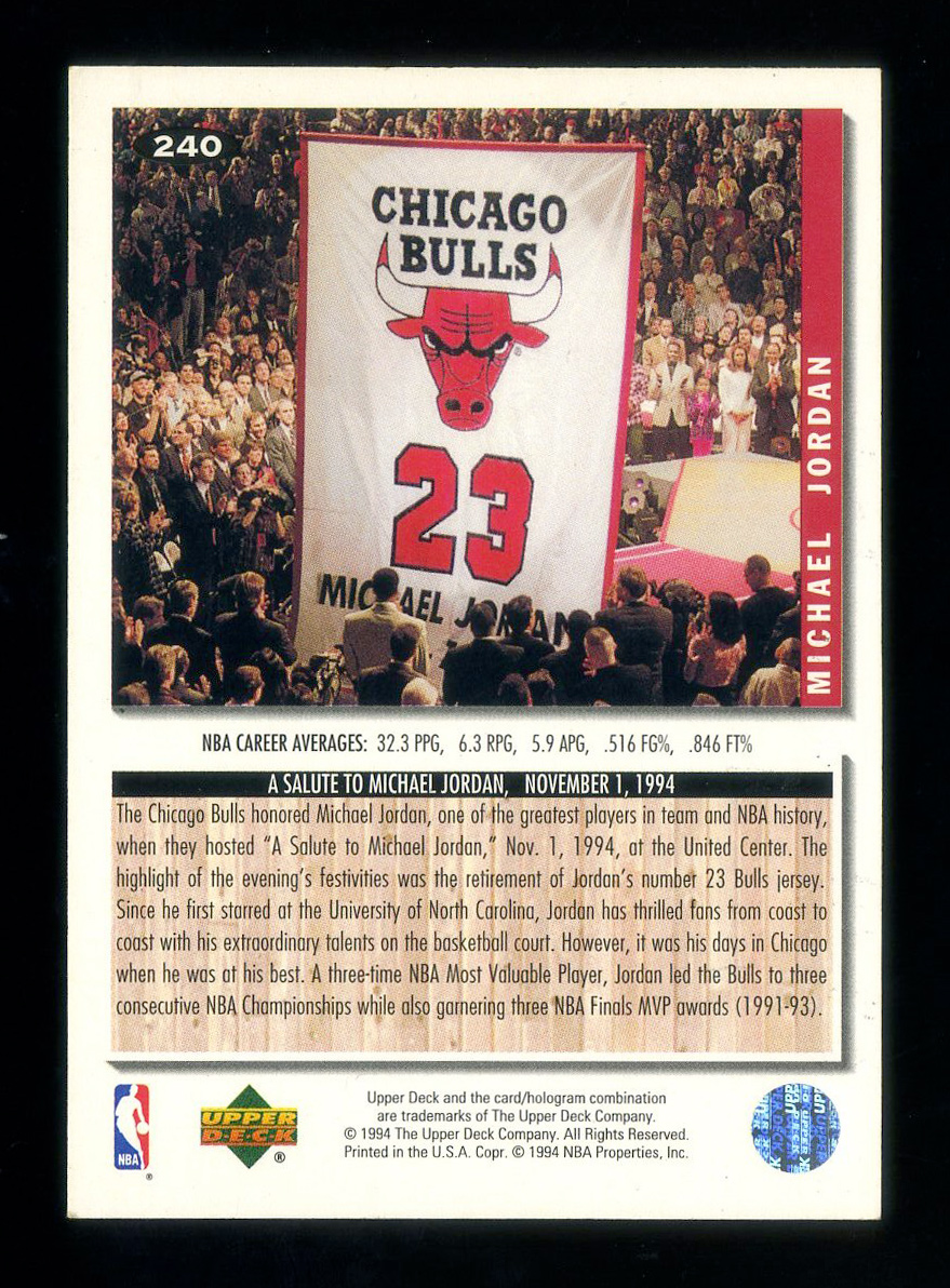 1994-95 Collector’s Choice Michael Jordan迈克尔乔丹芝加哥公牛23号球衣退役仪式名场面1994年11月1日第一次退役
