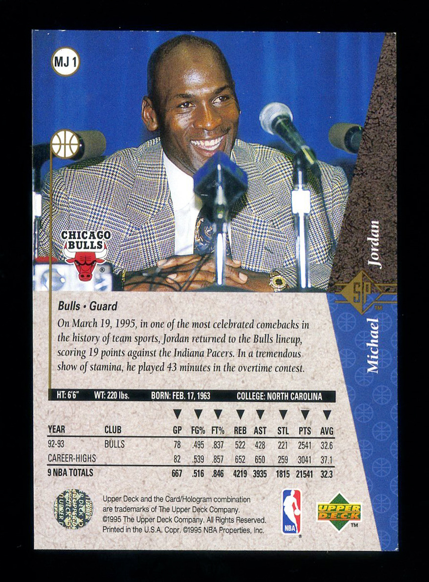 194-95 SP He’s Back Silver Michael Jordan迈克尔乔丹复出纪念高端系列大比例银平行1:192红版1:30边角小白